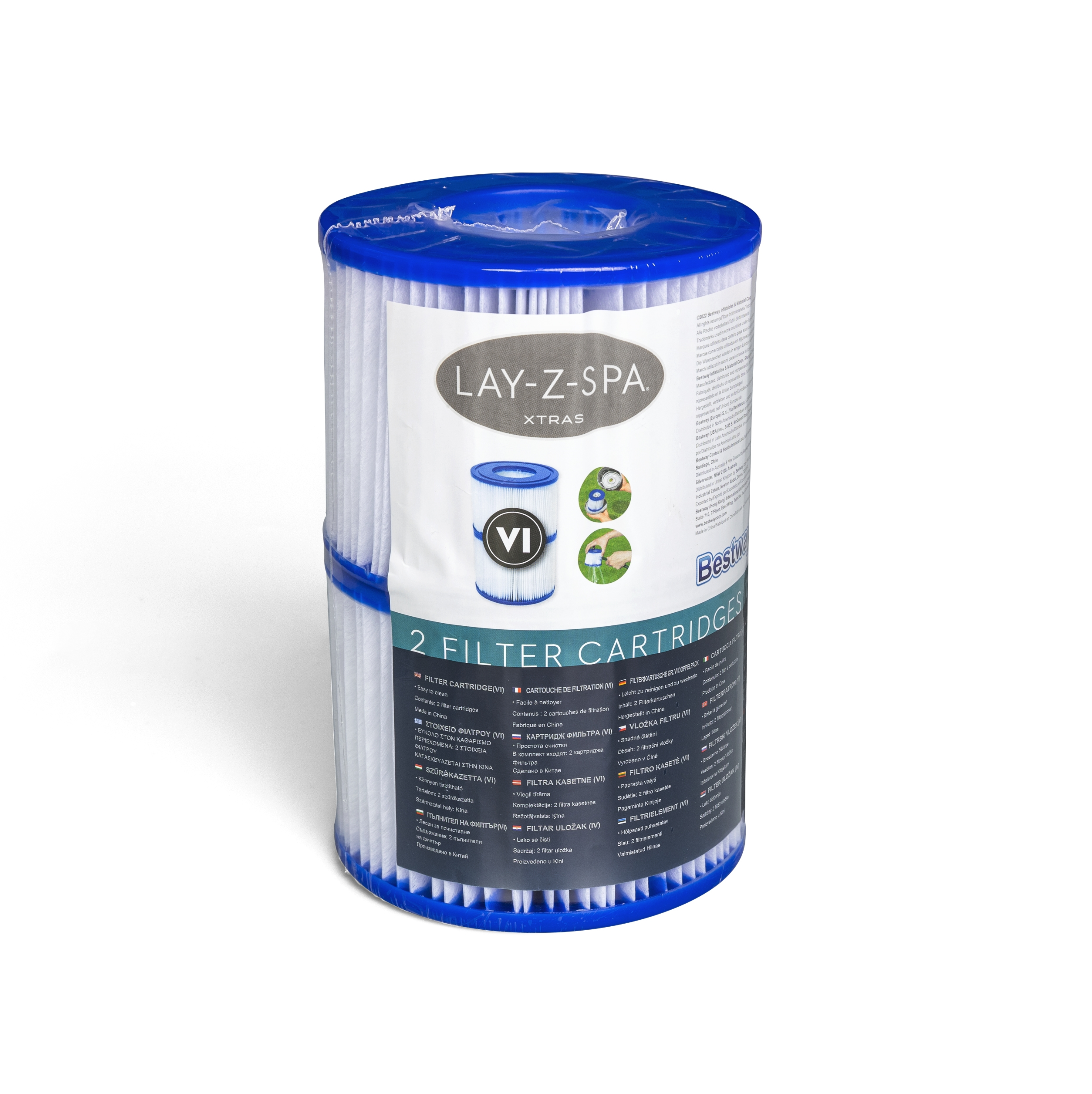 Lot de 2 cartouches Type (VI) pour spa gonflable Lay-Z-Spa® tous modèles Diamètre 10,6 cm hauteur 8 cm Cartouche de remplacement pour la série Lay-Z-Spa® Facile à nettoyer : il suffit de passer la cartouche sous l'eau claire Contenu : 2 cartouches de filtration