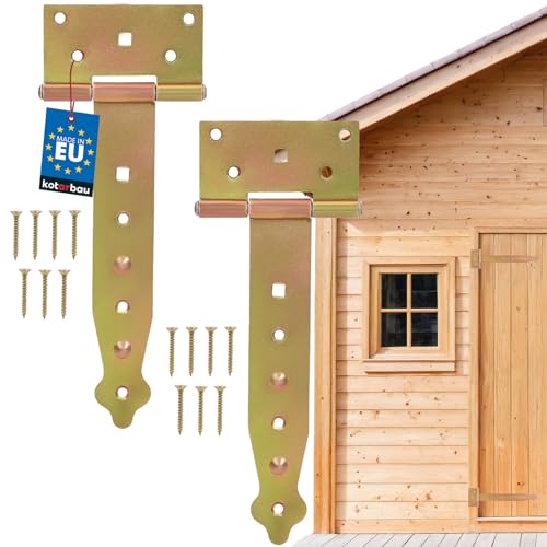 Lot de 2 Charnières de Porte en Croix Galvanisé - 200 mm - Charnière de Porte - Charnière à Portail de Jardin - Doré - KOTARBAU