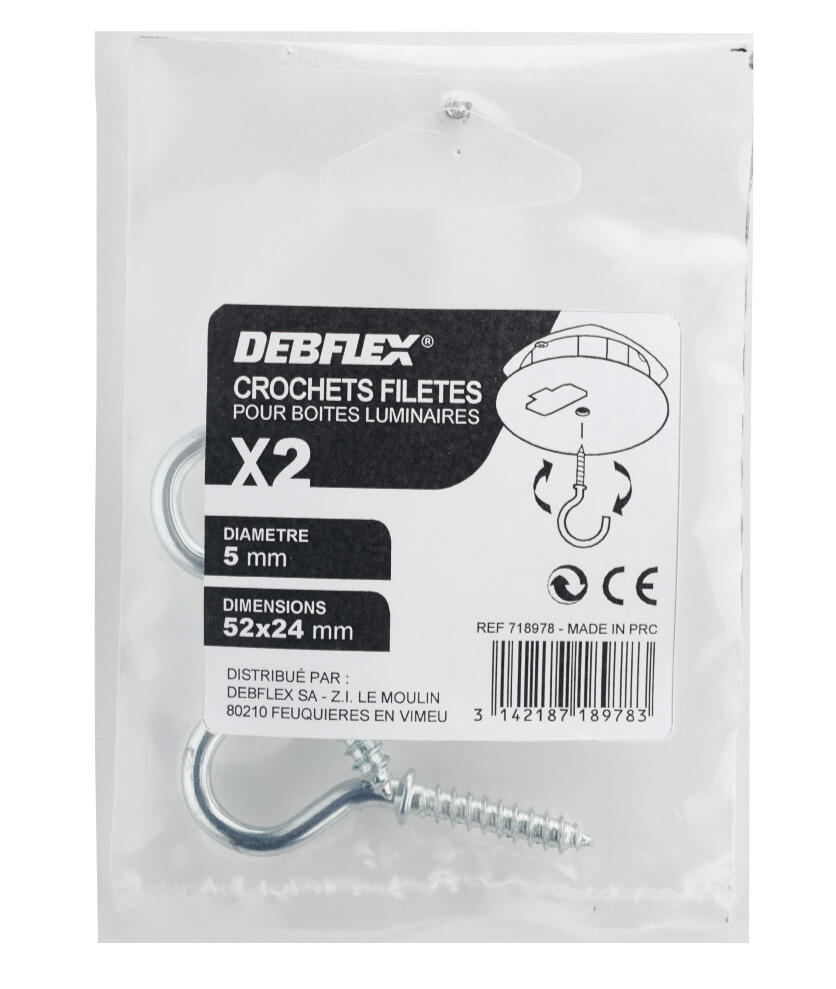 Lot de 2 crochets à visser acier DEBFLEX x L.52 mm