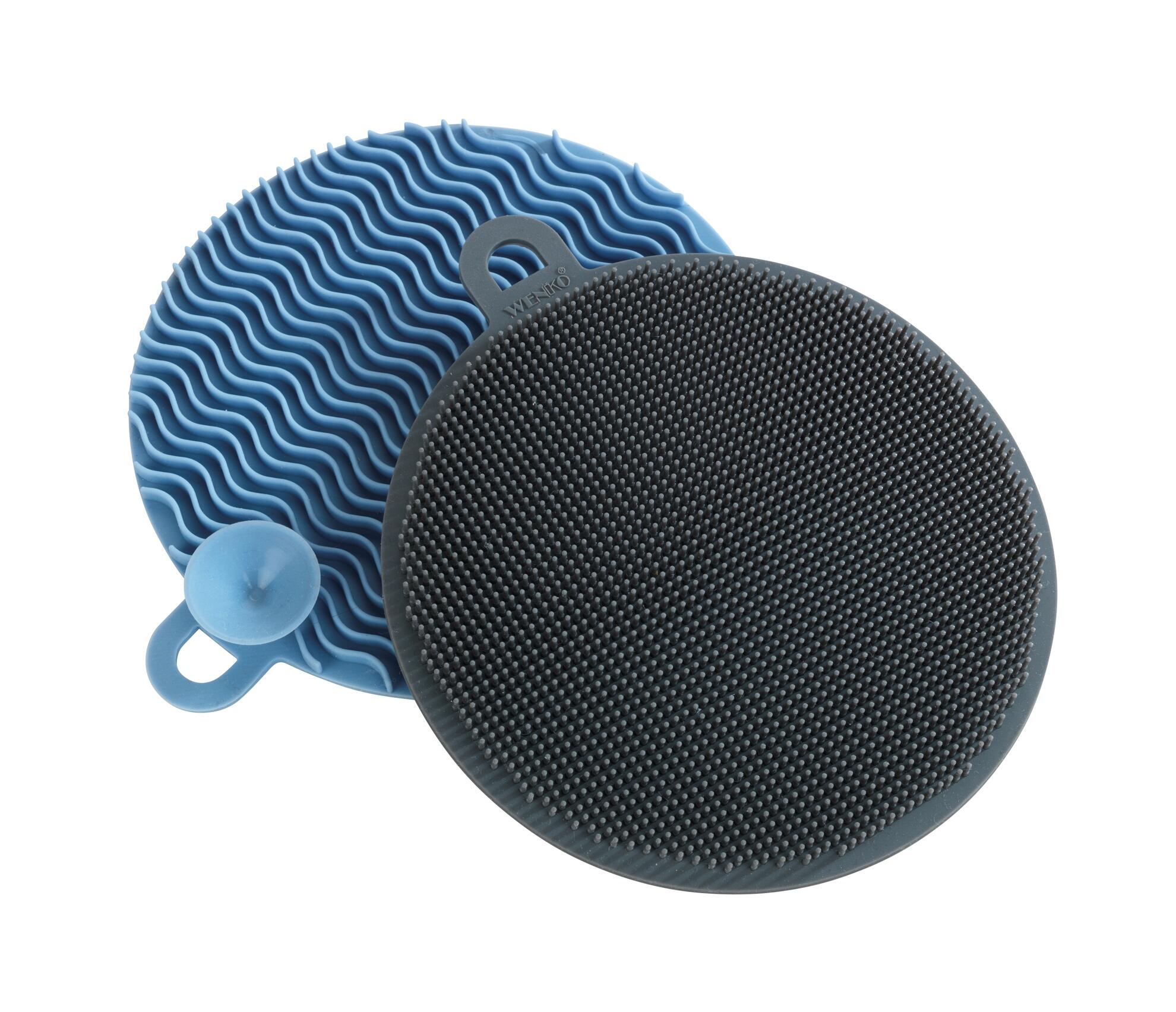 Éponge en silicone multifonction. Sa partie avec des picots fins permet d’enlever des salissures légères, la partie rugueuse s’utilise pour éliminer des résidus tenaces. Avec œillet de suspension et ventouse pour l’accrocher. Très facile à nettoyer passe au lave-vaisselle.