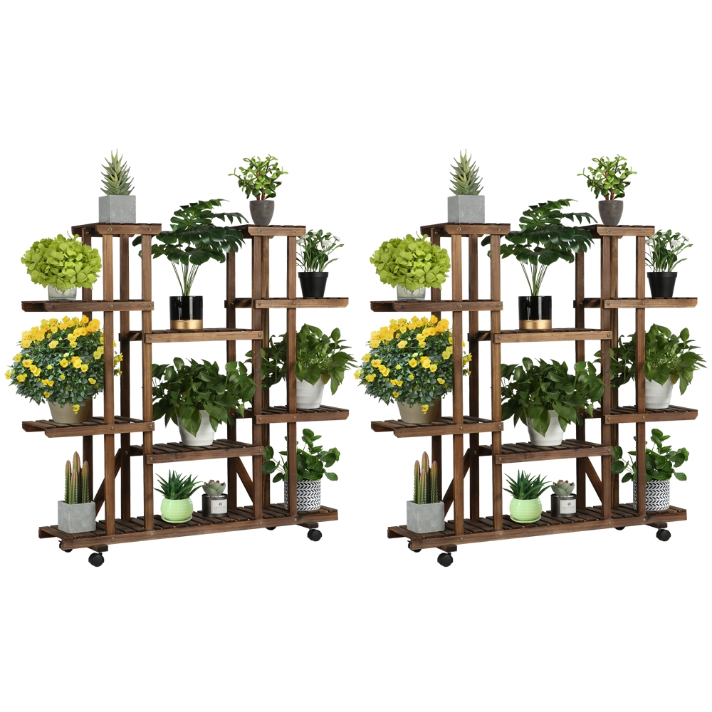 Lot de 2 Étagère à Fleurs en Bois Porte-plantes à Roulettes avec 9 Tablettes, Couleur du Bois Yaheetech