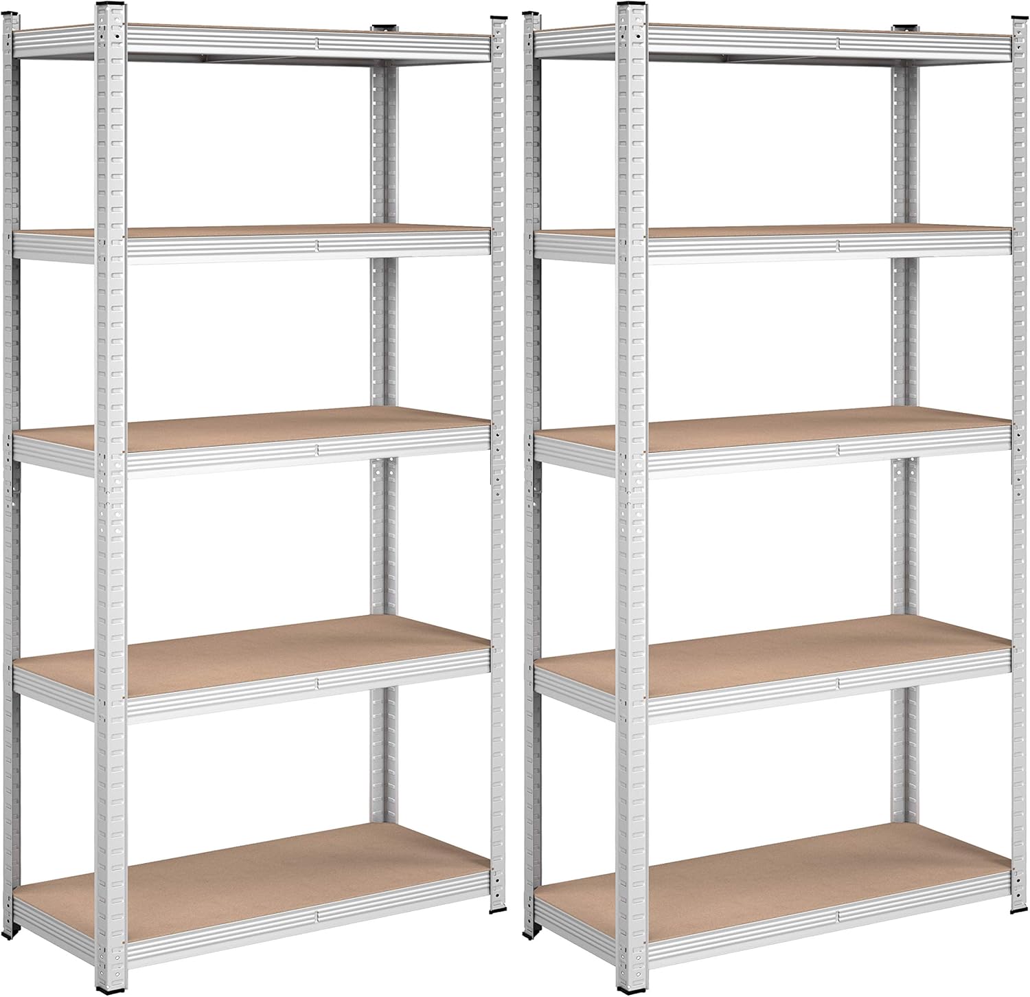Lot de 2 Rayonnage Étagères charge lourde métallique 180 x 90 x 40 cm, 5 niveaux Argent