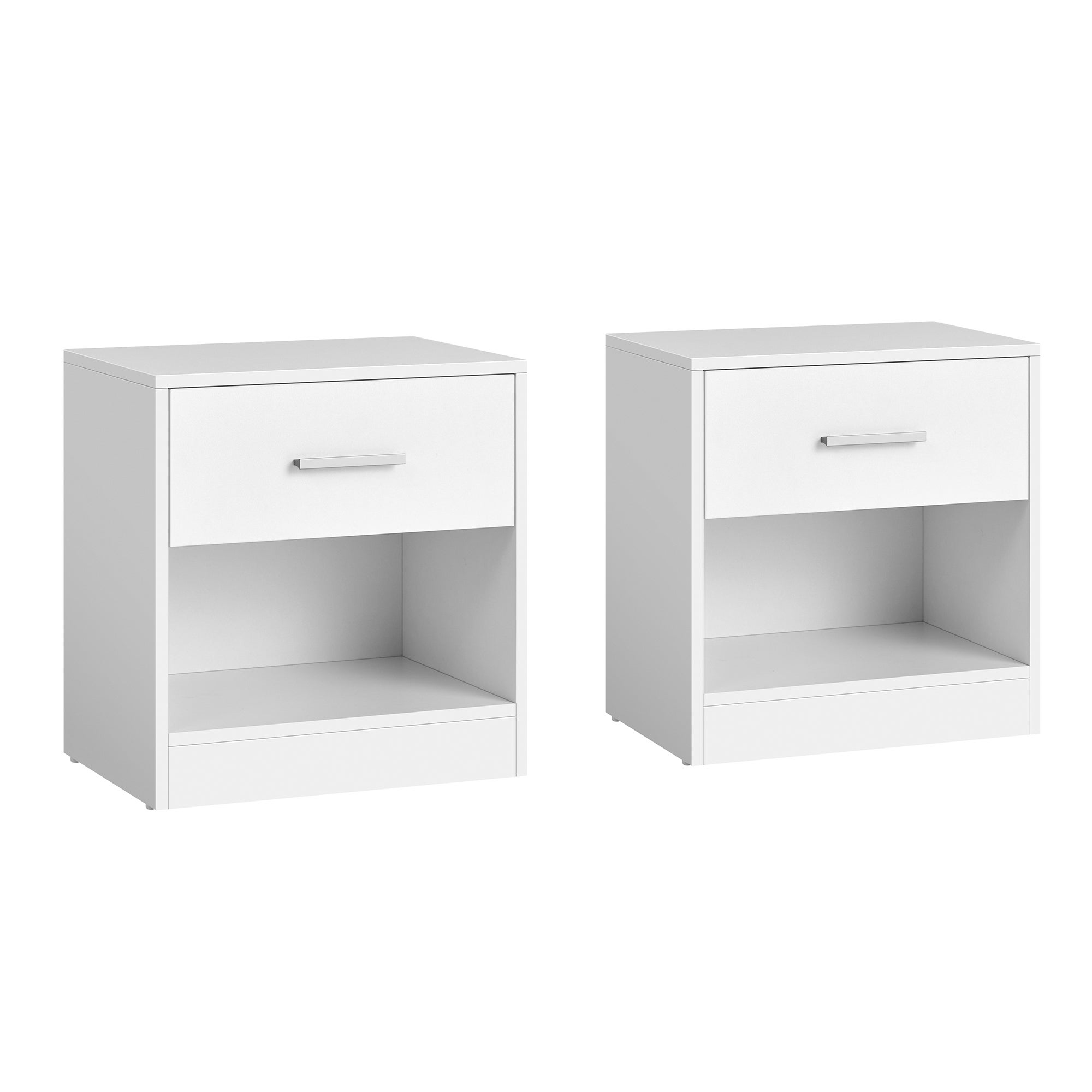 Lot de 2 Tables de Chevet, avec Tiroir, Compartiment Ouvert, 39 x 28 x 41 cm, Blanc Classique
