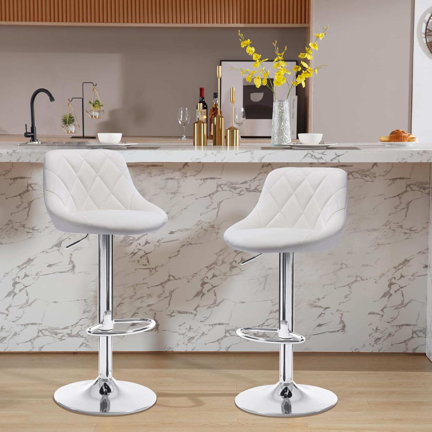 Lot de 2 Tabouret de bar WOLTU, Tabouret de Cuisine en cuir synthétique, Siège bien rembourré, Hauteur réglable, Facile à nettoyer, Blanc