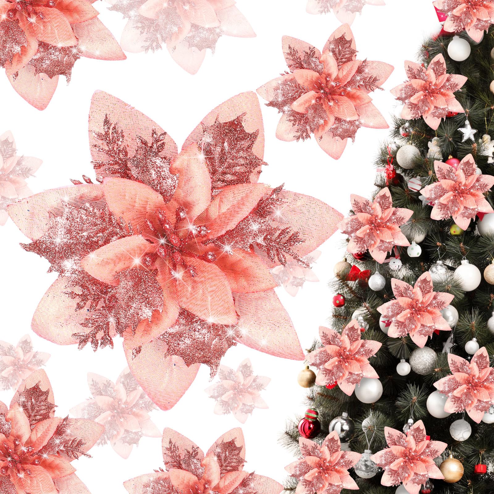 Lot de 20 décorations de Noël, fleurs artificielles scintillantes avec clips, décorations pour sapin de Noël, pendentifs de fleurs artificielles