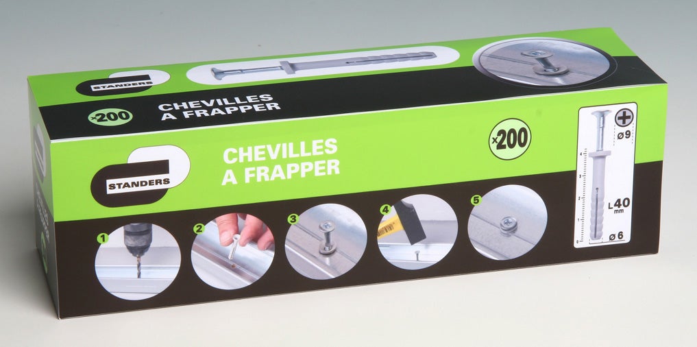 Lot de 200 chevilles à frapper, STANDERS, 6 x 40 cm