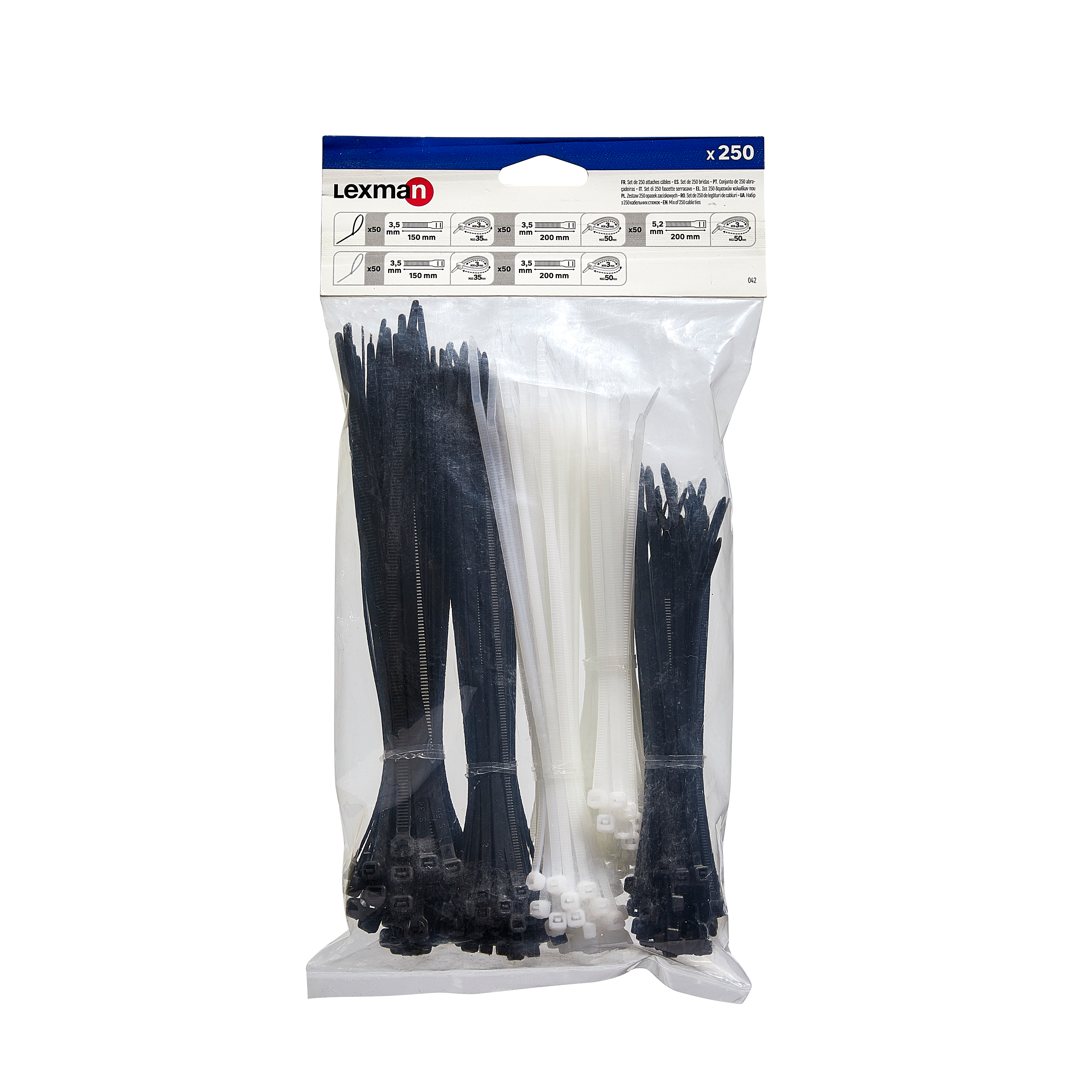 Lot de 250 colliers, diam. 3 à 50 mm, L.150-200, noir ou blanc, LEXMAN