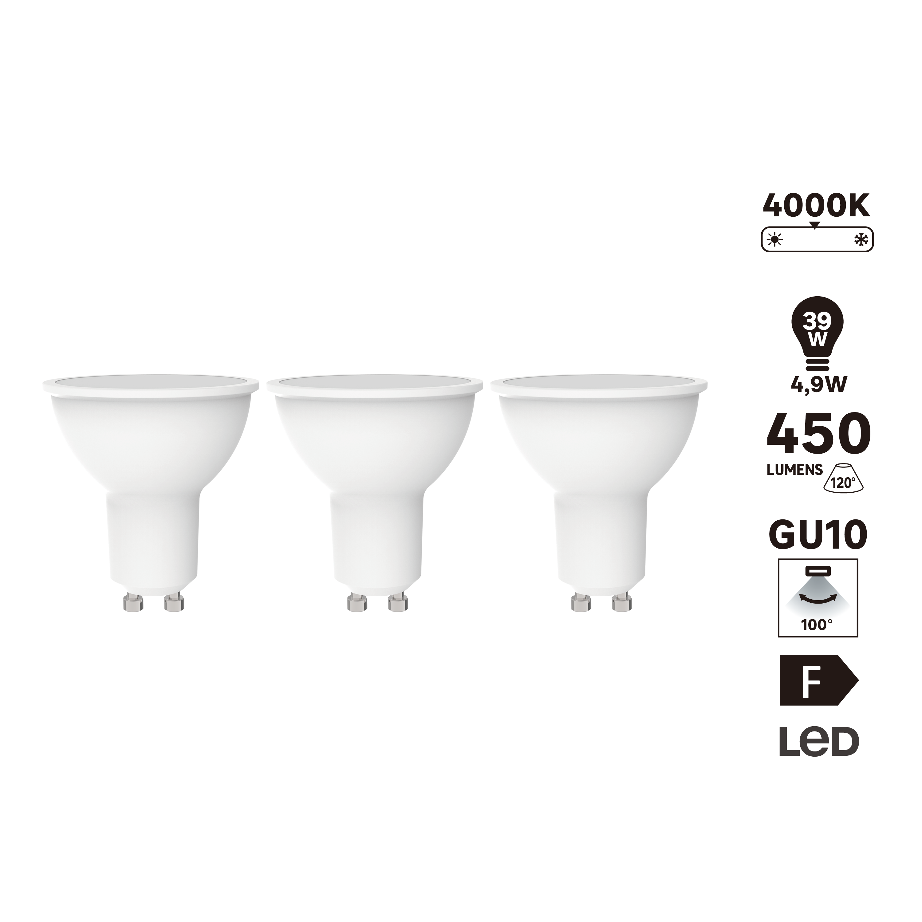 Lot de 3 ampoules led, réflecteur GU10, 450lm = 4,9W, blanc neutre