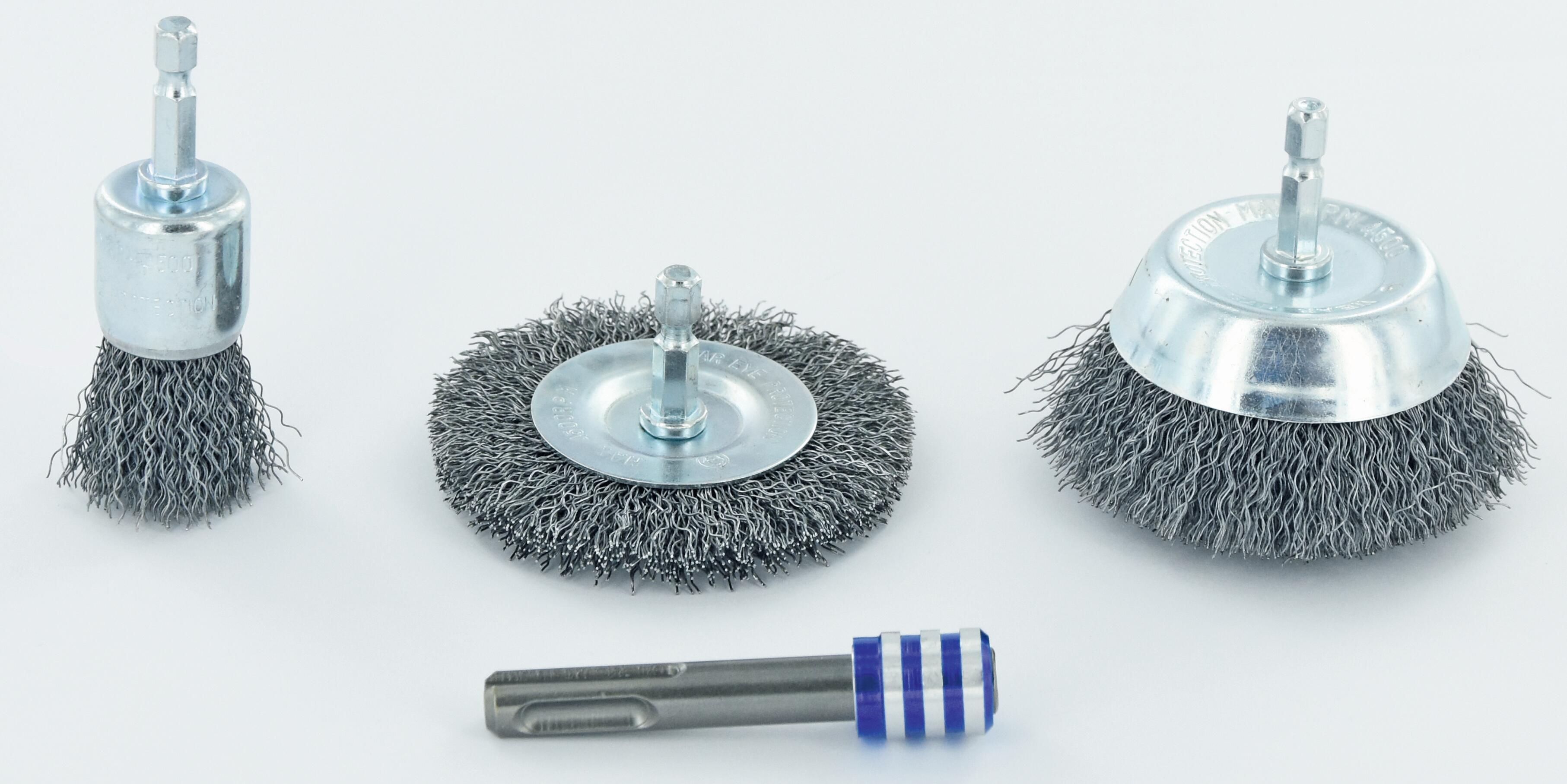 Lot de 3 brosses perceuse pour métal + 1 adaptateur SDS+, Diam.22/75 mm TIVOLY