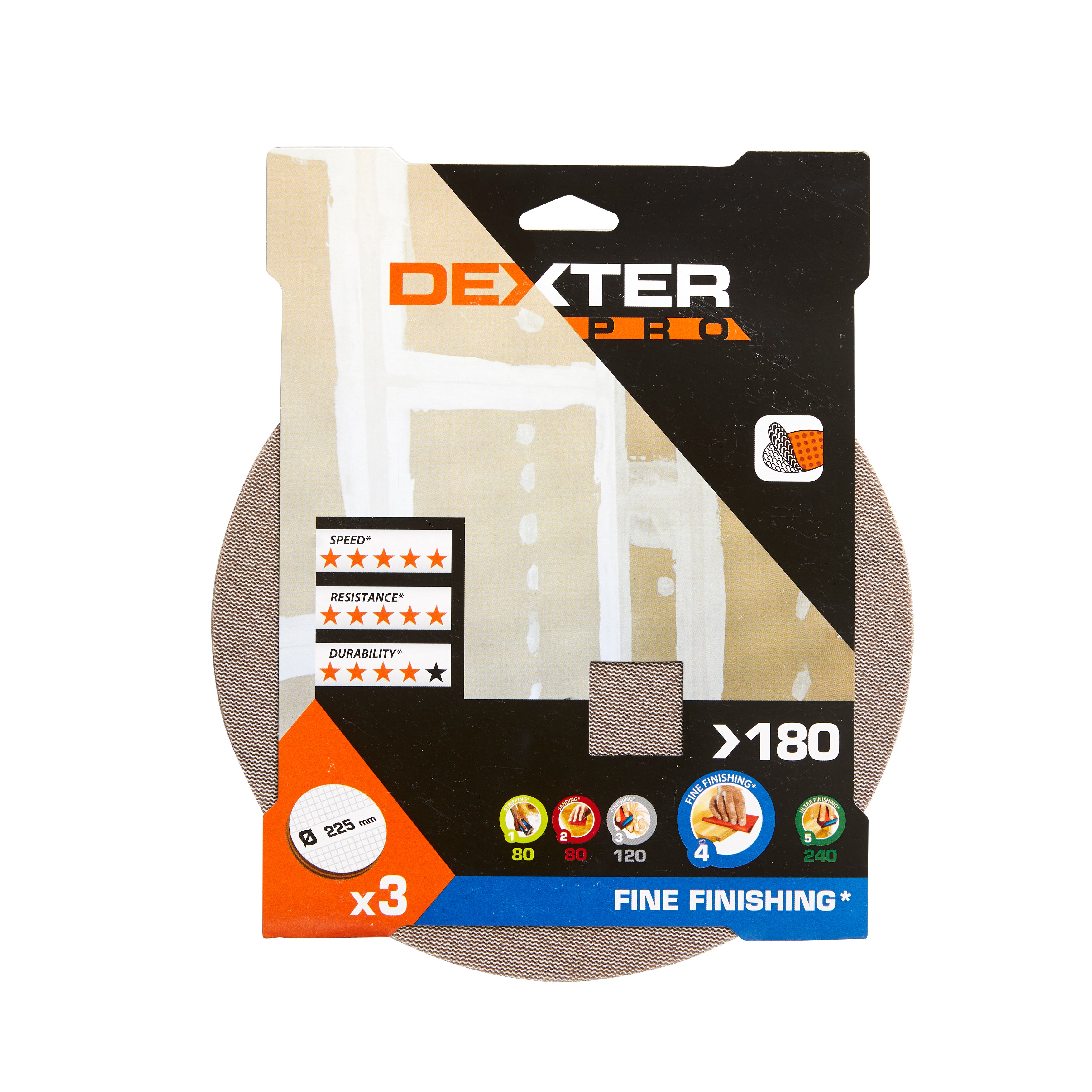 Initialement publié sur Lot de 3 disques abrasifs pour plâtre, DEXTER PRO, diam 225mm grain 240