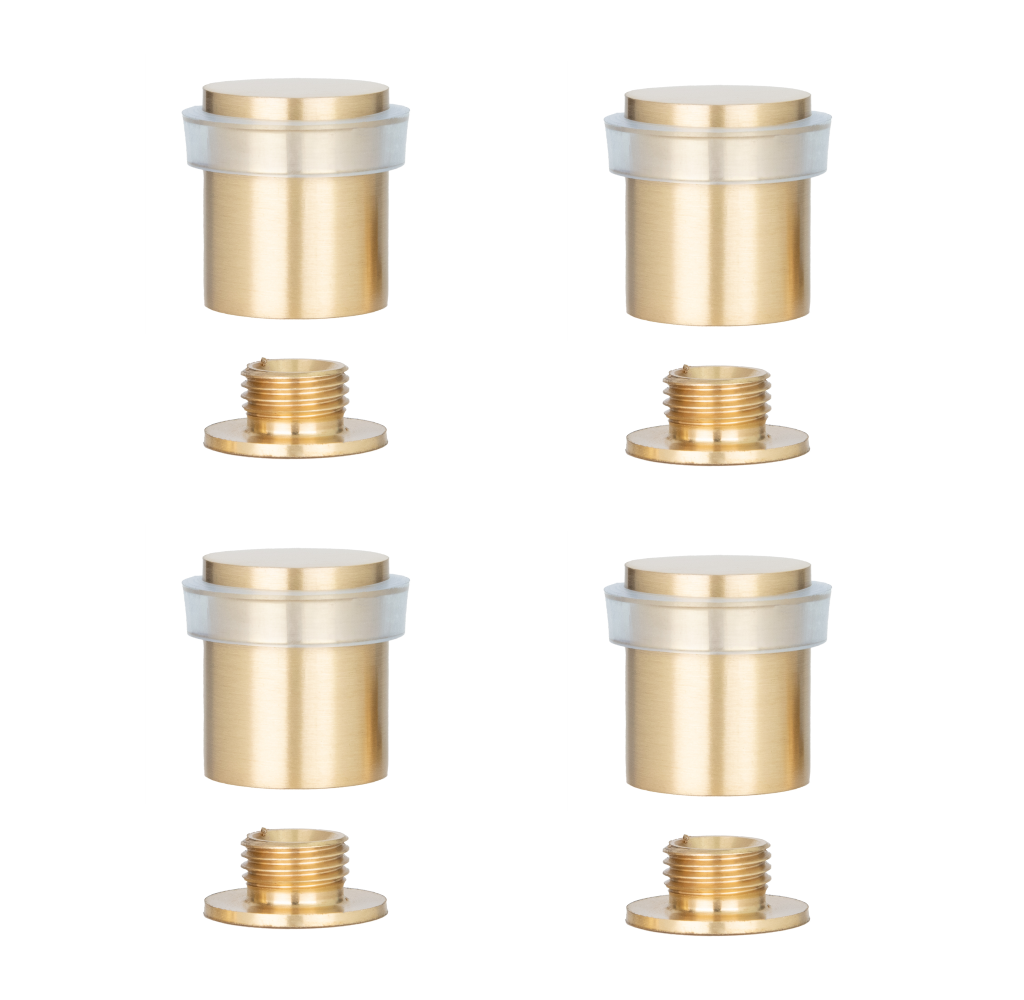 Ce lot de 4 butoirs de sol mesure 20 millimètres de diamètre et 25 millimètres de hauteur. Le butoir de porte en laiton massif est conçu avec un caoutchouc silicone protecteur qui protège vos portes et vos murs en absorbant l'impact et en réduisant les bruits d'impact. Sa fabrication avec des matériaux nobles le rend adapté aux lieux humides. Un arrêt de porte décoratif avec une finition mate satinée et un caoutchouc de protection transparent. INSTALLEZ VOTRE BUTÉE DE PORTE EVI : 1. marquer l'emplacement et percer le trou. 2. Essuyez tout résidu de matériau à l'aide d'un chiffon humide. 3. Placez la cheville et vissez la base de l'arrêt au sol. 4. Visser le corps du bouchon à la base. REF. I-180