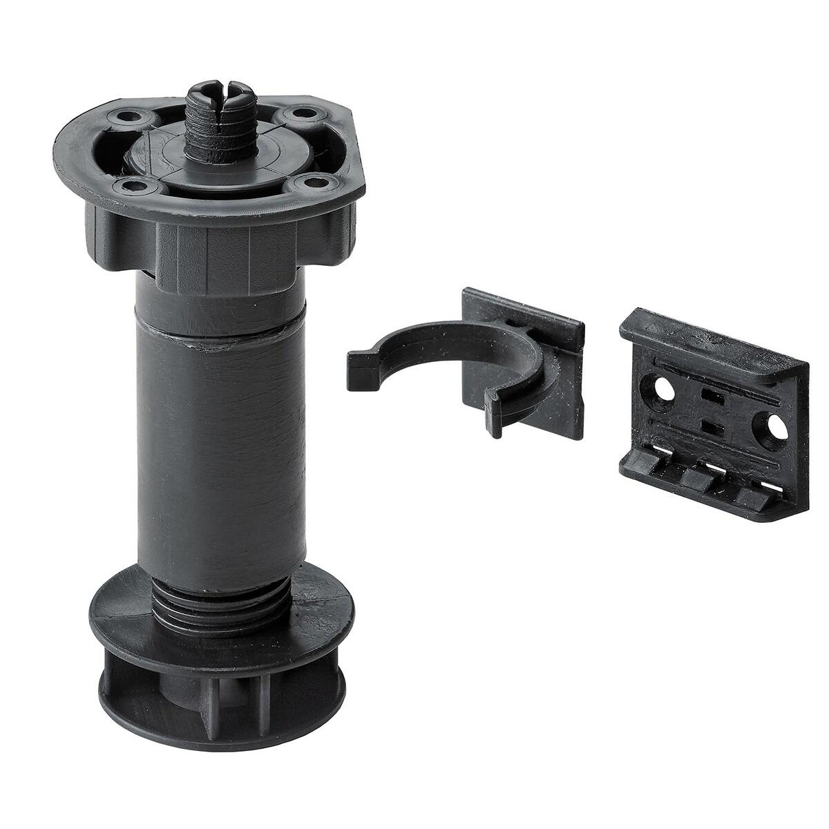 Avec clips de fixation pour plinthe. Réglable en hauteur jusqu'à 120 mm