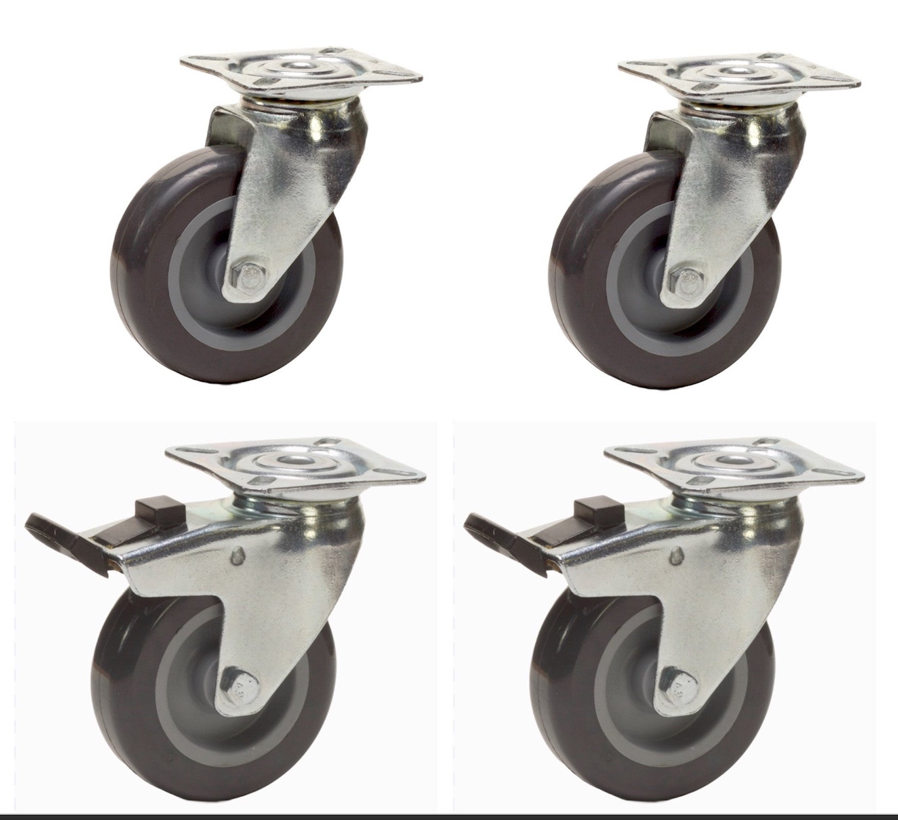 Lot de 4 roulettes pivotantes et pivotantes à frein Caoutchouc Thermoplastique GRIS 50 mm - 120 Kg