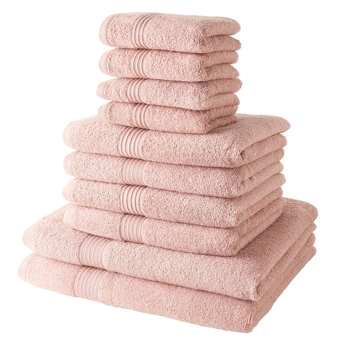 4 serviettes invité 30x50 cm, 4 serviettes de toilette 50x90 cm et 2 draps de bain 70x130 cm de la gamme Essential par Today