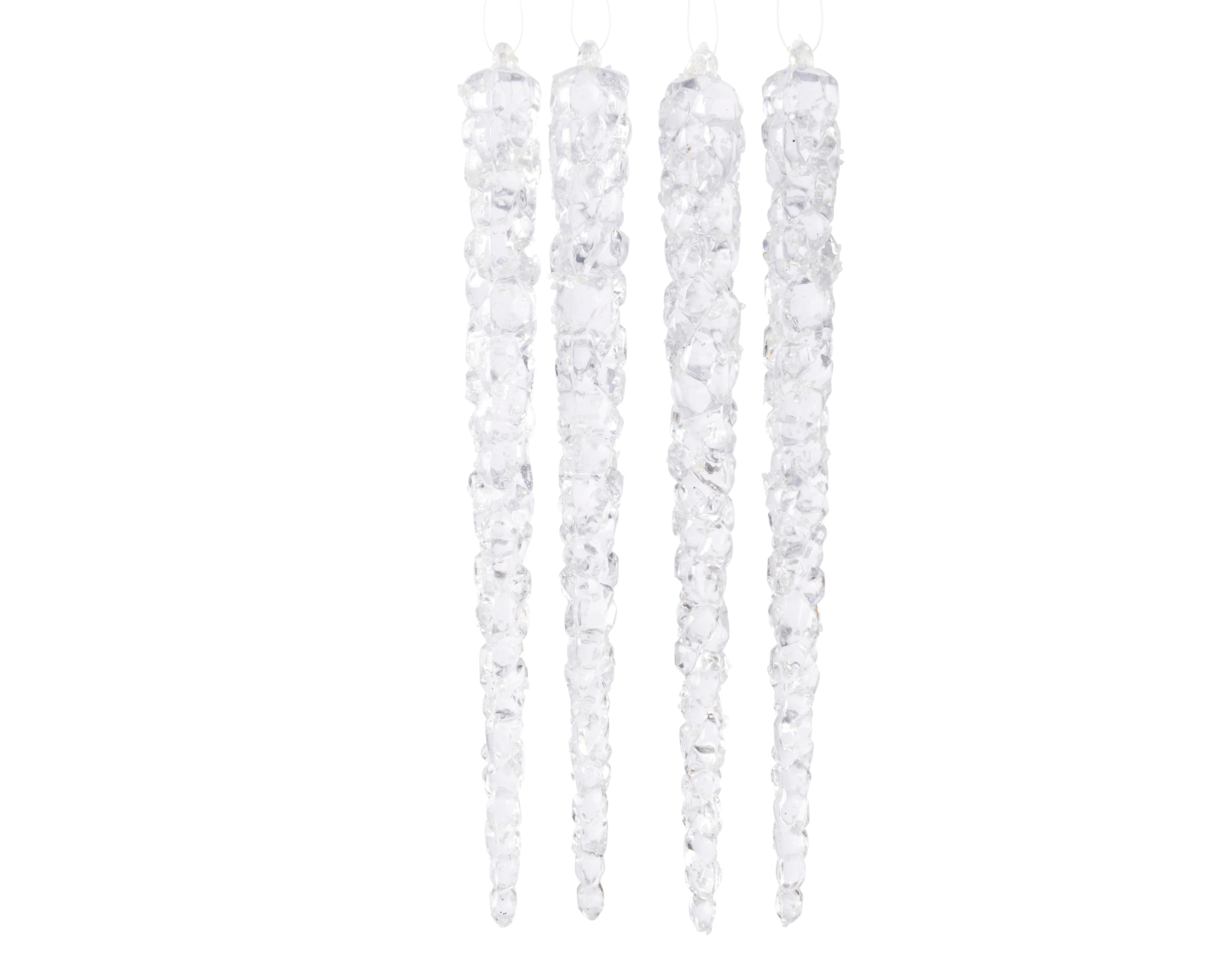 Lot de 4 stalactites à suspendre pour arbre de Noël en plastique blanc