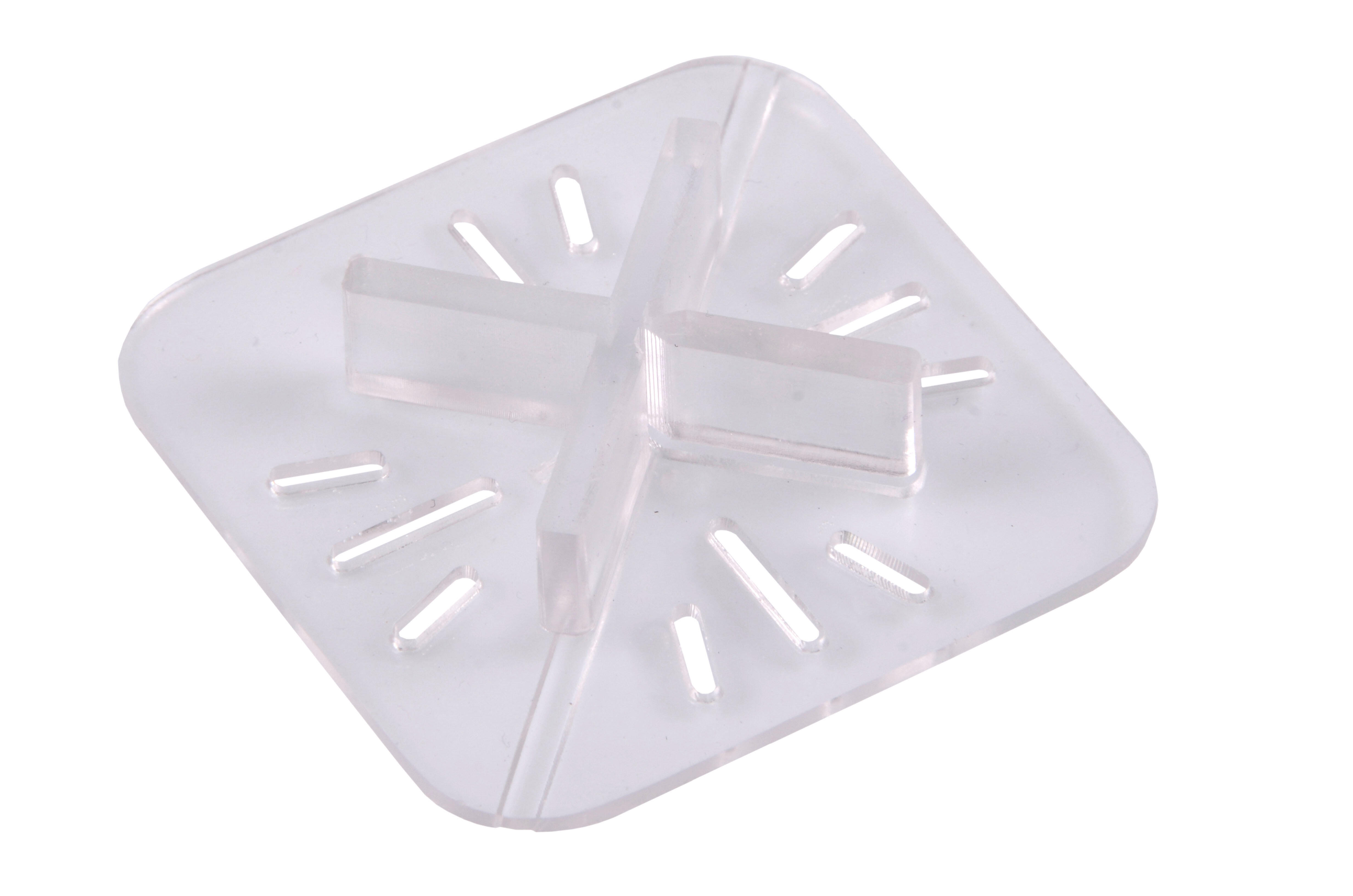 Croisillon stabilisateur, composé d’une embase large et de 4 écarteurs de 3 mm, permettant la pose de dalles de 20 mm directement sur sable ou gravier.