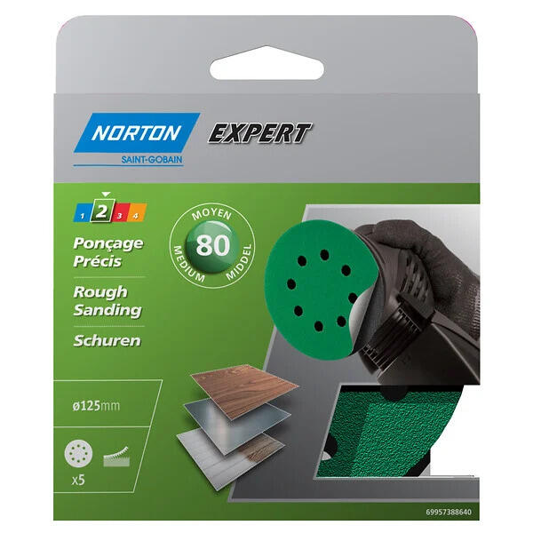 Lot de 5 disques abrasifs , 69957388640 NORTON grain 80
