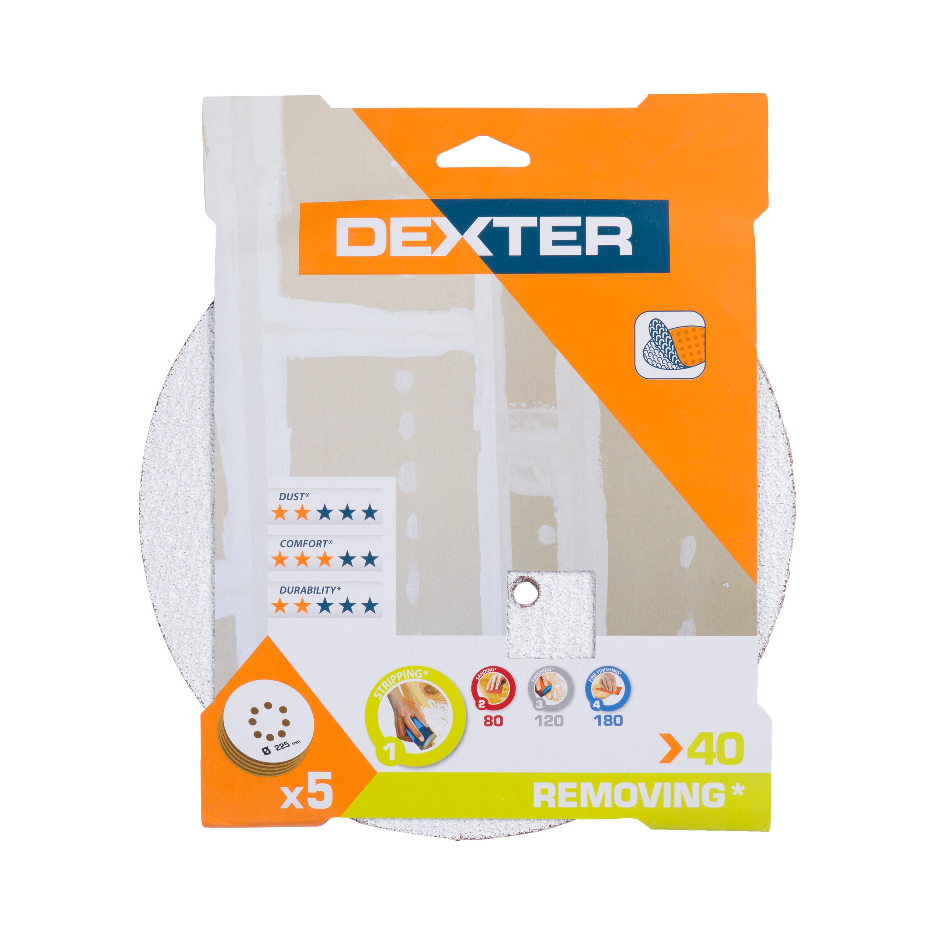 Lot de 5 disques abrasifs pour plâtre DEXTER,Diam.225 m grain 40