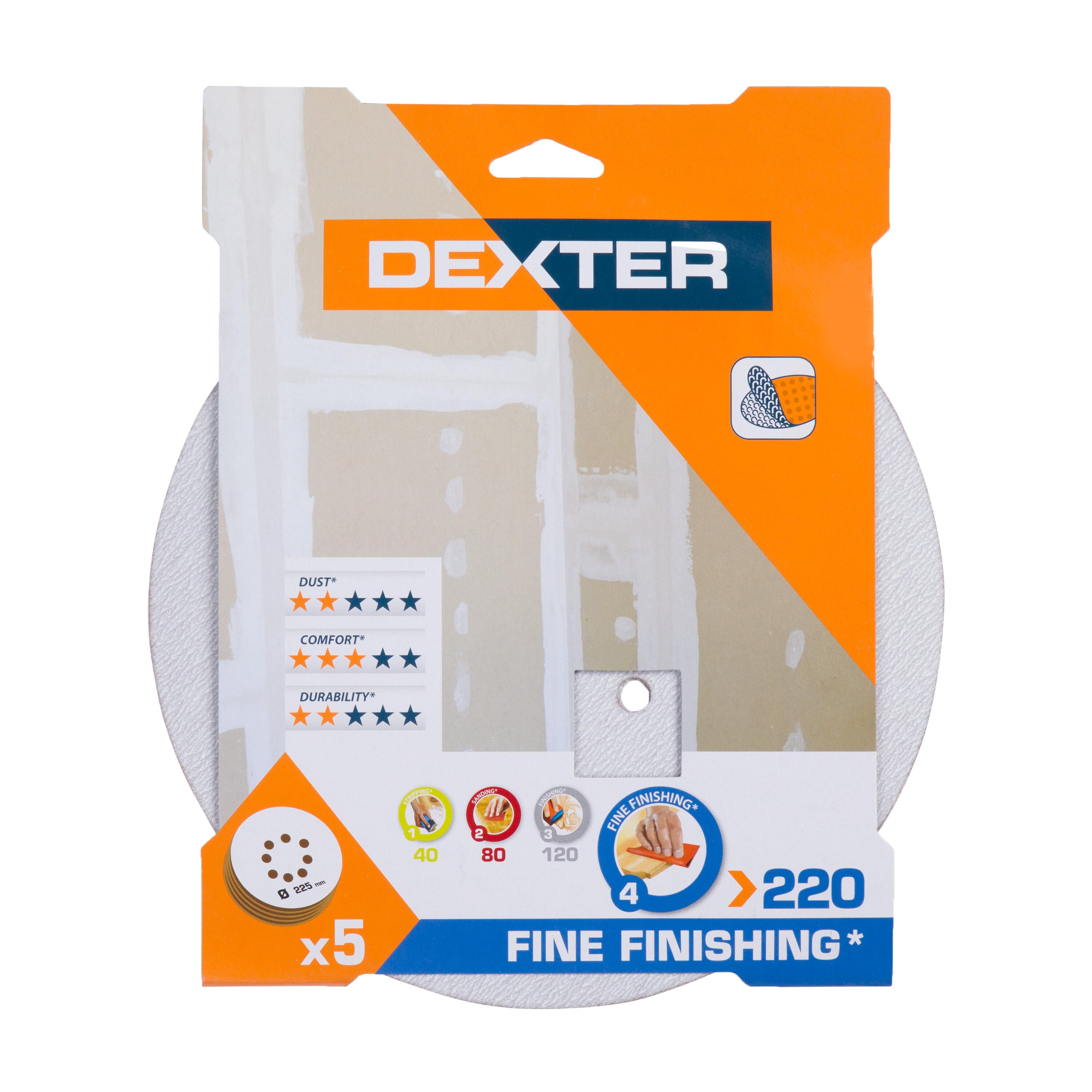 Lot de 5 disques abrasifs pour plâtre, DEXTER, Diam 225 mm grain 220