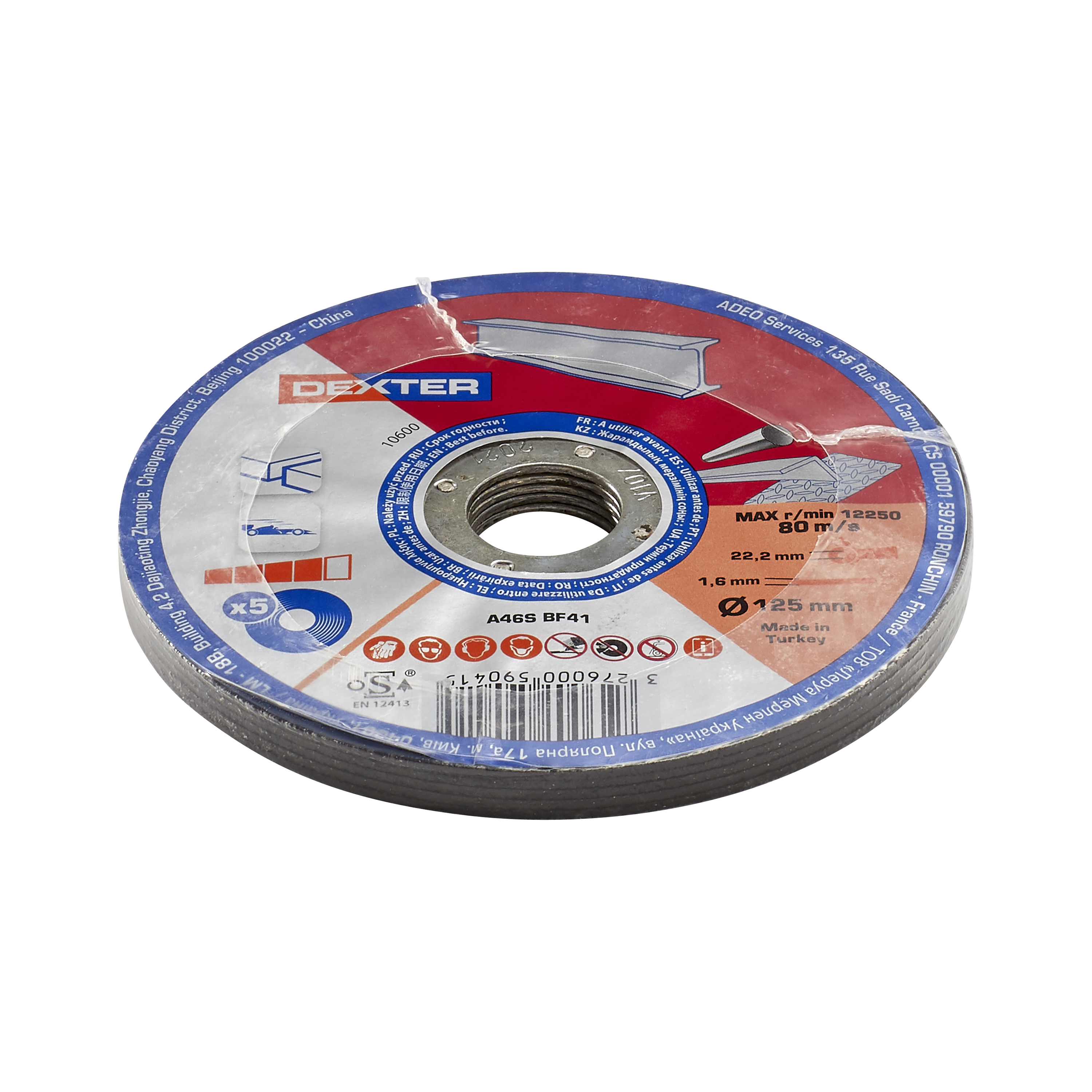 Lot de 5 disques de meulage oxyde d'alumine pour acier, T41 DEXTER, Ø125 mm