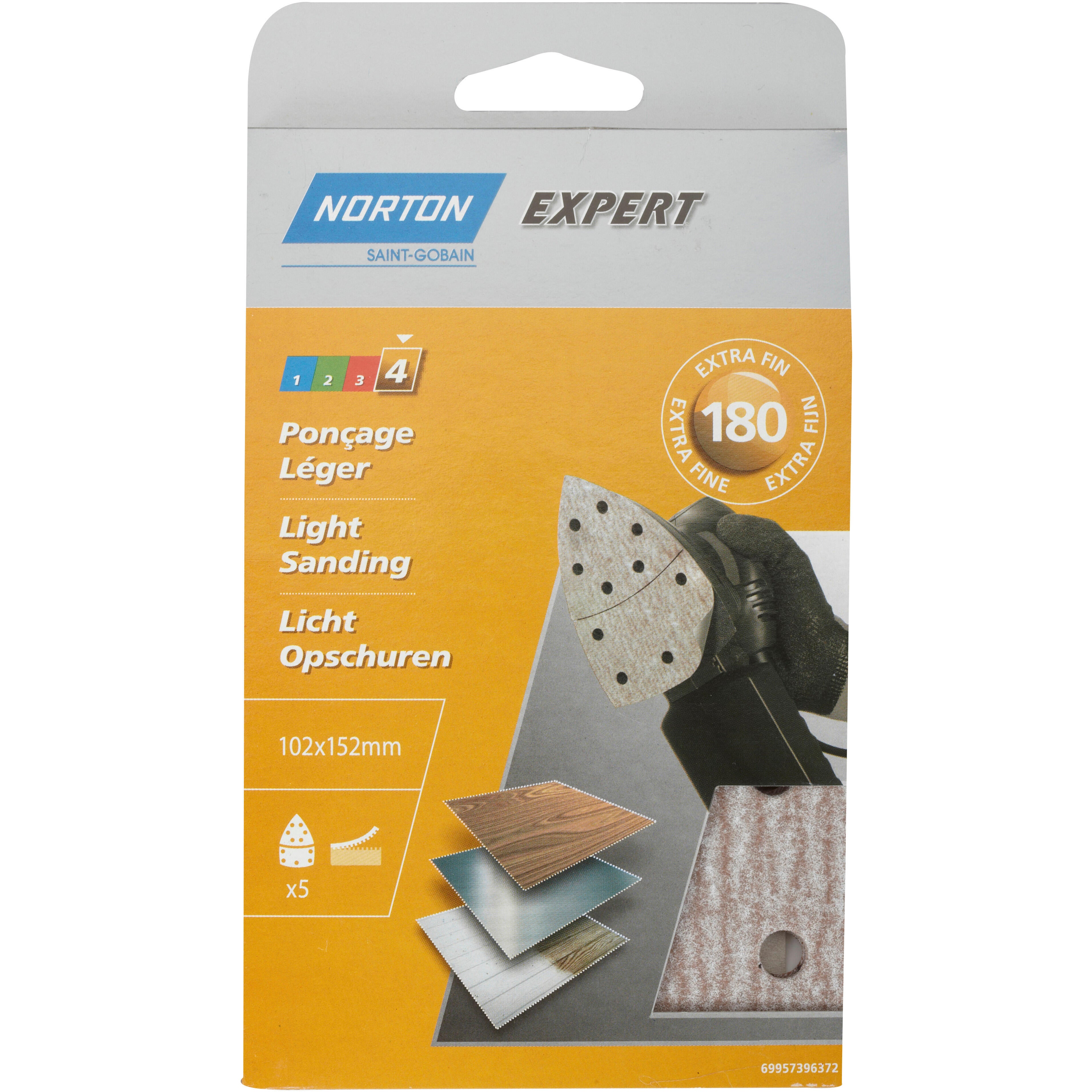 Lot de 5 patins abrasifs NORTON, 102x152 mm, grains 180