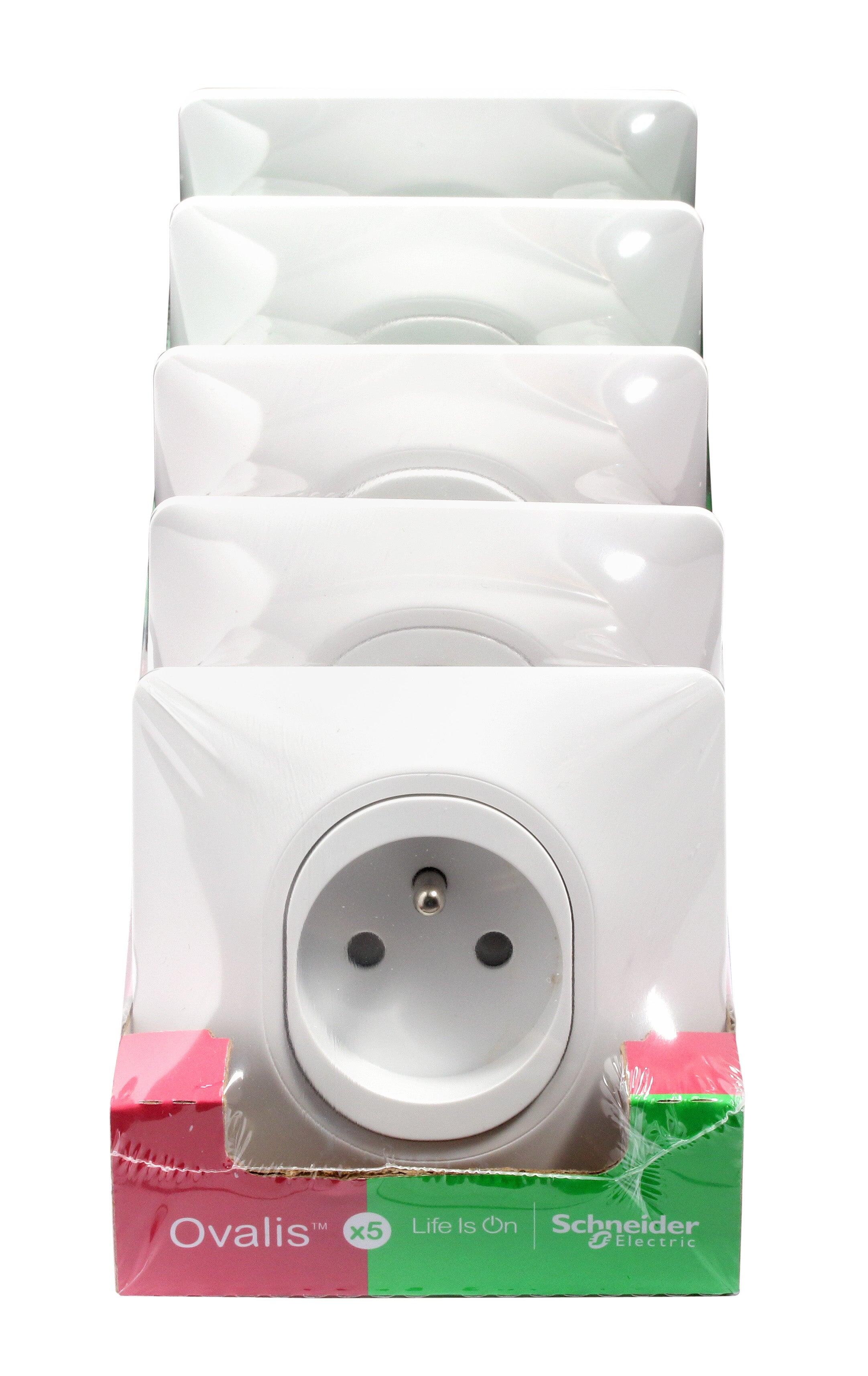 Lot de 5 prises avec terre complet Ovalis, SCHNEIDER ELECTRIC, blanc