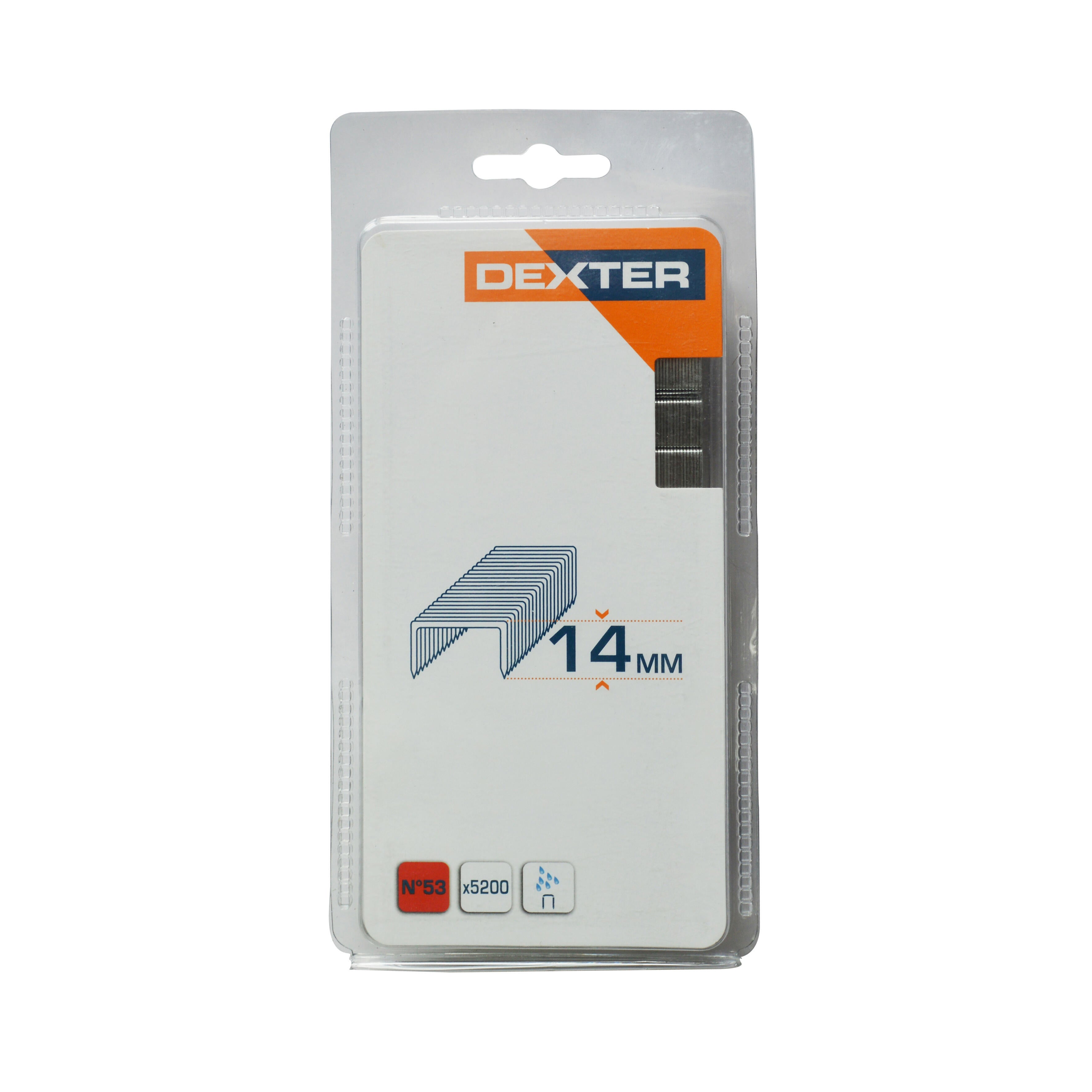 5200 agrafes N°53 à fil fin Dexter -hauteur 14 mm. Idéales pour les travaux nécessitant un fil fin discret. Idéales pour l'agrafage de tissus mais aussi l'affichage de posters, etc.
