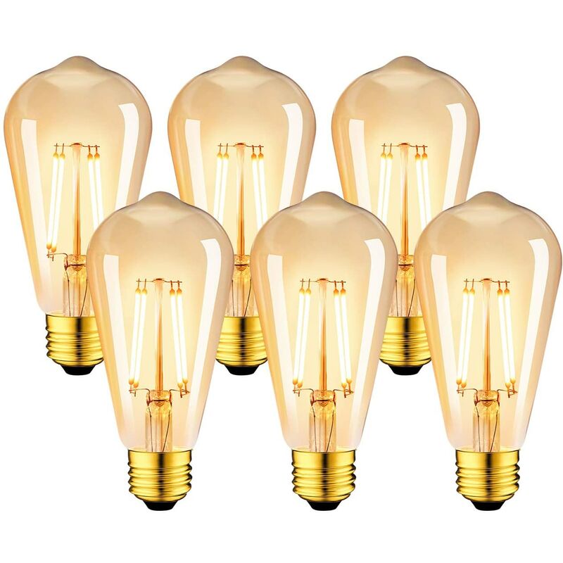Lot de 6 LED 6W Edison Vintage E27 - Ampoule à filament ST64 2200K Blanc Chaud - Equivalent à Ampoule Incandescente 48W
