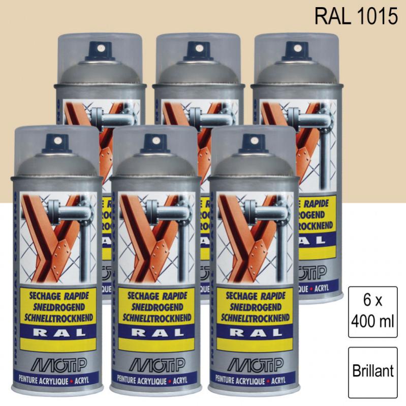 Lot de 6 Peintures aérosol RAL 1015 Ivoire clair brillant 400ml MOTIP
