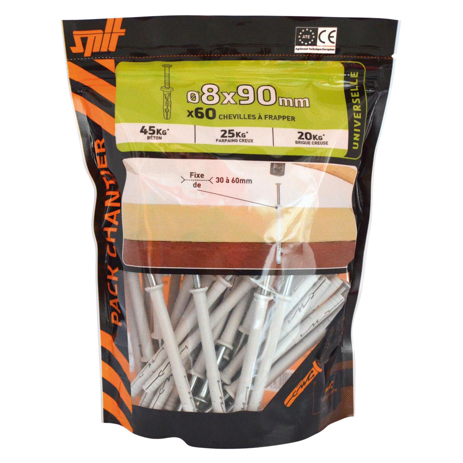 La cheville à frapper est la seule cheville fonctionnant dans tous les matériaux supports : pleins, creux, y compris plaque de plâtre pour les petites dimensions. Elle se choisit en fonction de l'épaisseur à fixer désignée par sa partie lisse sous la collerette. Idéale pour les travaux répétitifs, il suffit de la frapper au marteau pour déclencher l'expansion.