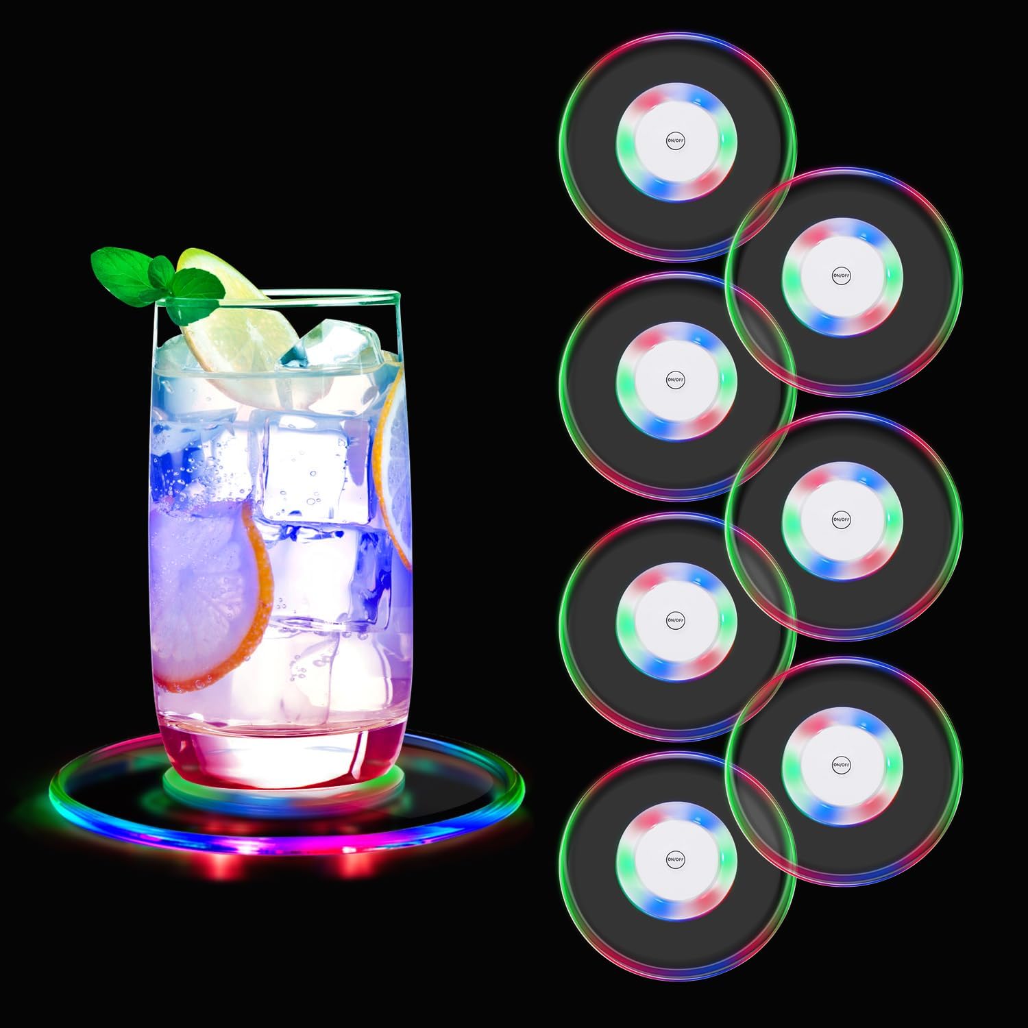 Lot de 7 Dessous de Verre LED Lumineux Coloré, Lumineux Batterie remplaçable 6 Couleurs