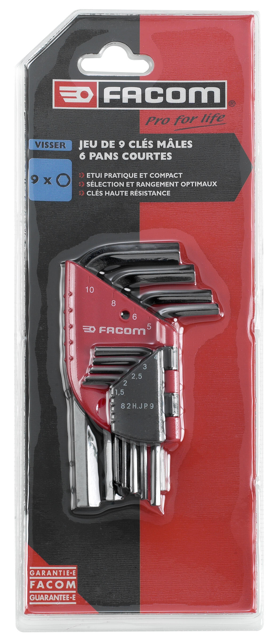 Lot de 9 clés mâles courtes en acier forgé FACOM 82H JP9APG