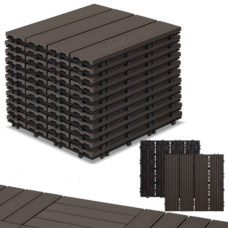 Lot de 99 dalles de Terrasse Clipsable 30 X 30 cm Revêtement Extérieur Pour Jardin Balcon Piscine Marron café