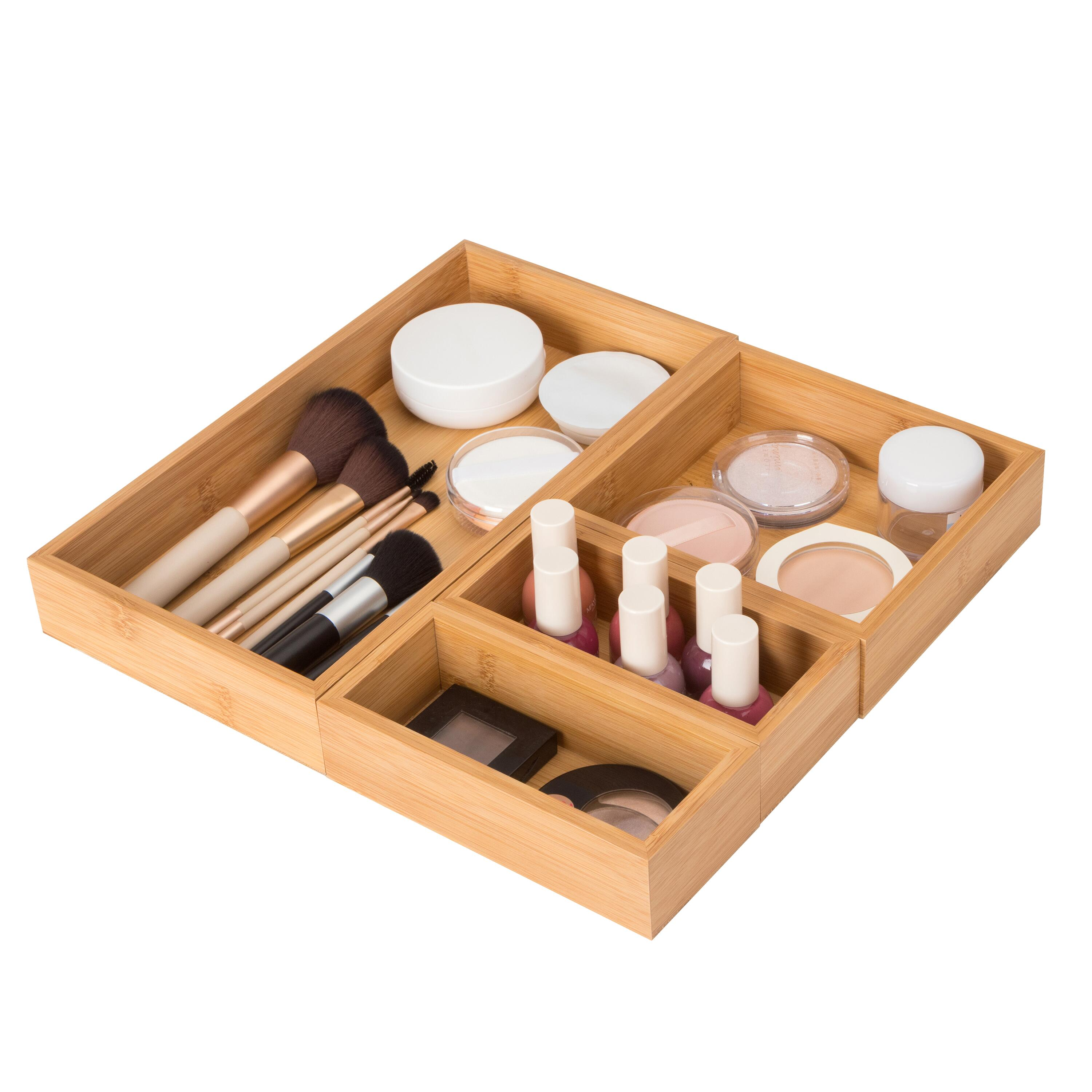 Ce produit est un ensemble de boîtes ou de plateaux de rangement en bambou pratiques et polyvalents, bien adaptés pour organiser les articles de salle de bain et les cosmétiques. Les clients louent la haute qualité, le design attrayant et la capacité du produit à personnaliser efficacement le rangement dans les tiroirs et les armoires. Les différentes options de taille sont appréciées, et le matériau en bambou est considéré comme une alternative durable et décorative au plastique. Bien que quelques examinateurs suggèrent que le prix pourrait être légèrement plus bas, le sentiment général est très positif, de nombreux clients déclarant qu'ils achèteraient à nouveau le produit.