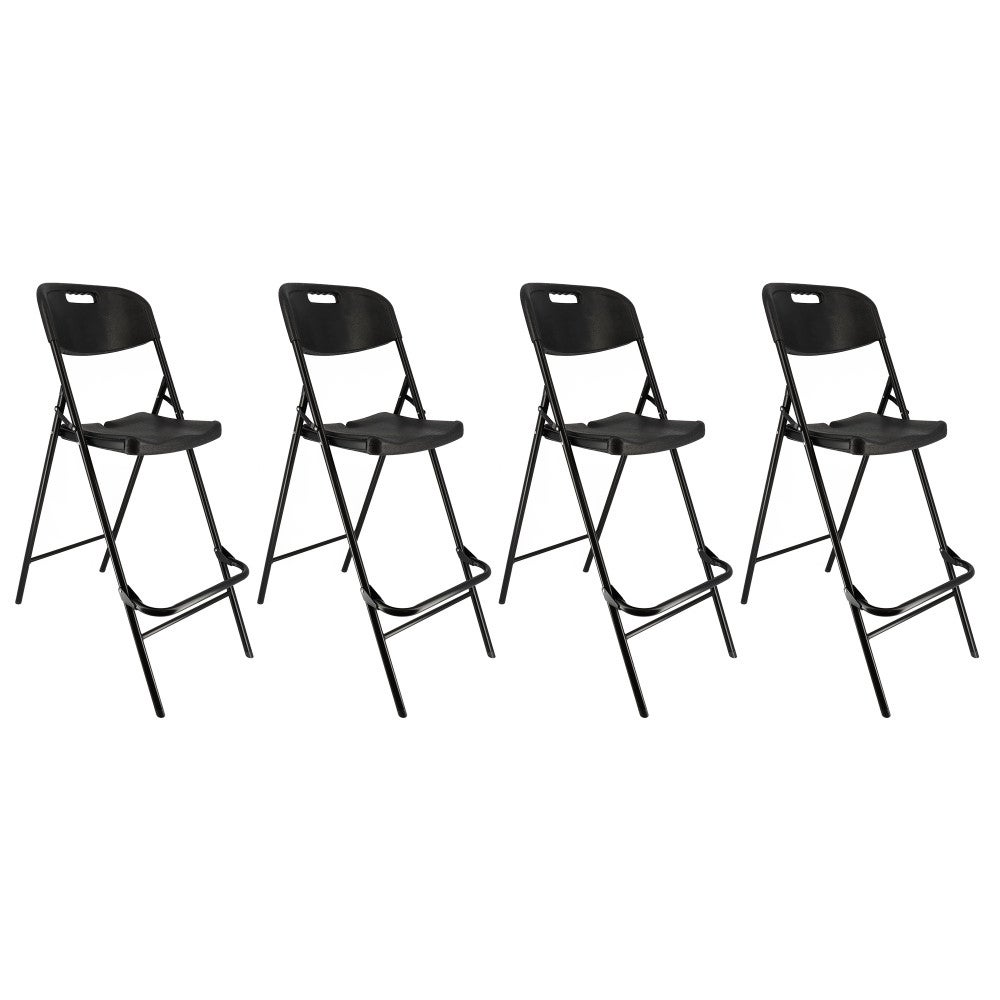 Lot de quatre chaises de bar pliantes noires - Ht 120cm - Chaises hautes pliantes - Cadre en acier - avec dossier et repose pied