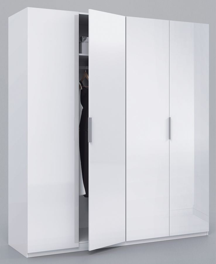 L'armoire Low Cost 4 portes est une armoire double spacieuse de style contemporain avec 4 portes, idéale pour la chambre à coucher. Elle est parfaite pour les couples, car elle se compose de 2 armoires simples dont l'agencement intérieur est identique.