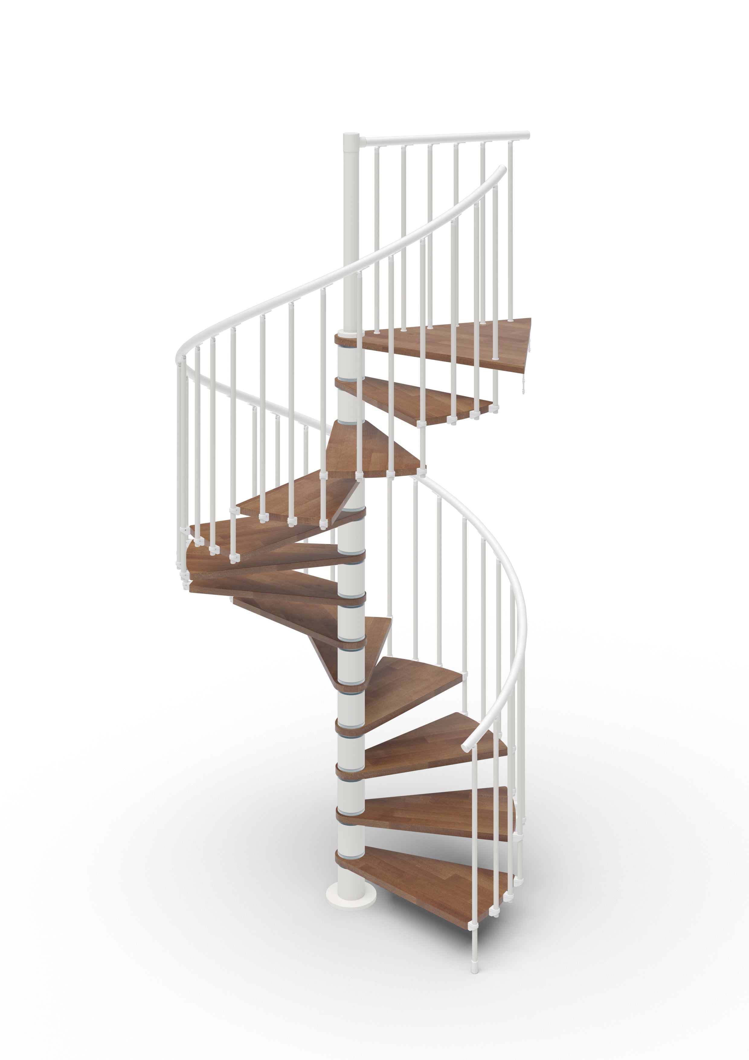 Luna - Escalier en colimaçon - Ø 120 cm - 13 Marches - 13 Contremarche - Rampe avec colonnes vertical (Modèle Tube) - Main Courante Plastique - Couleur Bois: Noyer 25 - Couleur Métal: Blanc