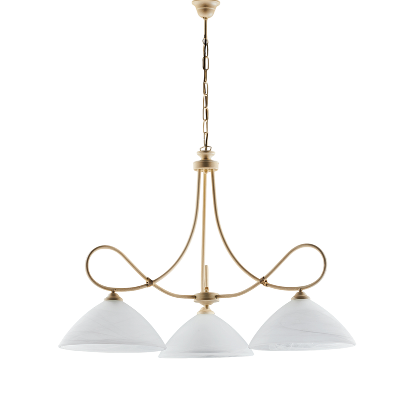 Lustre Dallas ivoire, effet décapé et or antique, verre albâtre d.13, 3 lumières, éclairage élégant et discret