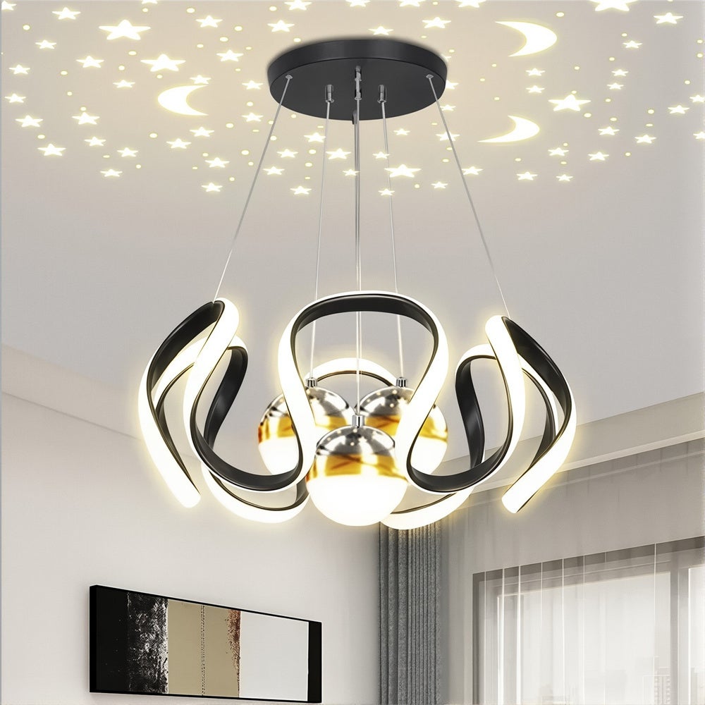 Lustre LED nordique, éclairage de salon, salle à manger, cuisine, design ciel étoilé, lustre à intensité variable – Noir 3 lumières