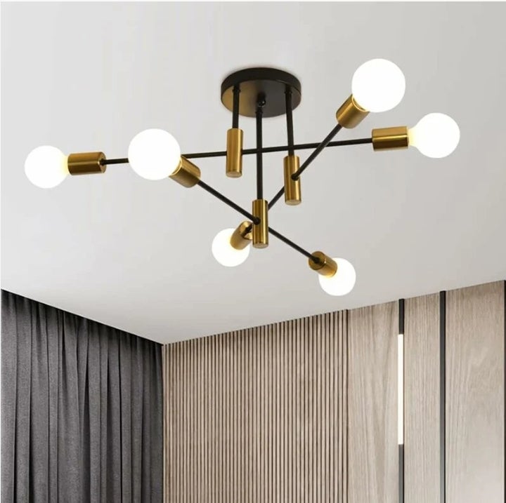 d'intérieur du milieu du siècle —— La conception combinée du corps de la lampe noire et de la coupelle de la lampe dorée ajoute de la mode à vos espaces applicables. Le plafonnier vintage est parfait pour le salon, salle à manger, cuisine, chambre, balcon, foyer, bureau, bar, café, couloir, hall, l'entrée, etc.