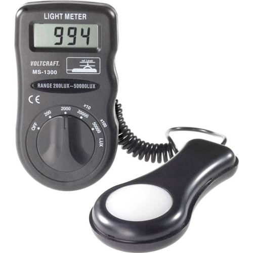 Luxmètre VOLTCRAFT MS-1300 0.1 - 50000 lx Luxmètre digital MS-1300 Voltcraft Précision ± 5% 0,1 - 50 000 lx Avec sacoche de transport L'appareil permet de mesurer précisément la luminosité nécessaire dans des zones d'habitation, de travail et de loisirs ou de contrôler les différents appareils d'éclairage. Très simple d'utilisation, cet appareil pratique est équipé d'un capteur de lumière externe. Idéal également pour les photographes amateurs ou les propriétaires de terrariums voulant mesurer la luminosité optimale. Équipement : Indicateur pile faible Capteur de lumière avec diode photo Long Life incorporée et capuchon de protection On/Off et commutateur de sélection de la plage de mesure Données techniques : Affichage (appareil de mesure) : numérique,LCD · Dimensions produit, hauteur : 188 mm · Dimensions produit, largeur : 65 mm · Données techniques complémentaires : Taux de mesure: 1,5/s · Fonction de mesure : Eclairement · Longueur : 25 mm · Plage d'intensité lumineuse (max.) : 50000 lx · Plage de mesure de l'intensité lumineuse (min.) : 0.1 lx · Poids : 160 g · Précision de mesure d'intensité lumineuse : 5 % · étalonné : d'usine (sans certificat) Contenu de livraison : Sacoche solide · Mode d'emploi.