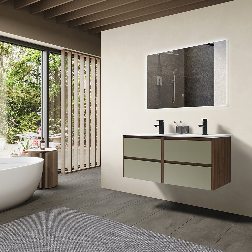 LuxuryBain - Meuble de salle de bain double vasque 120cm bois et vert avec miroir led