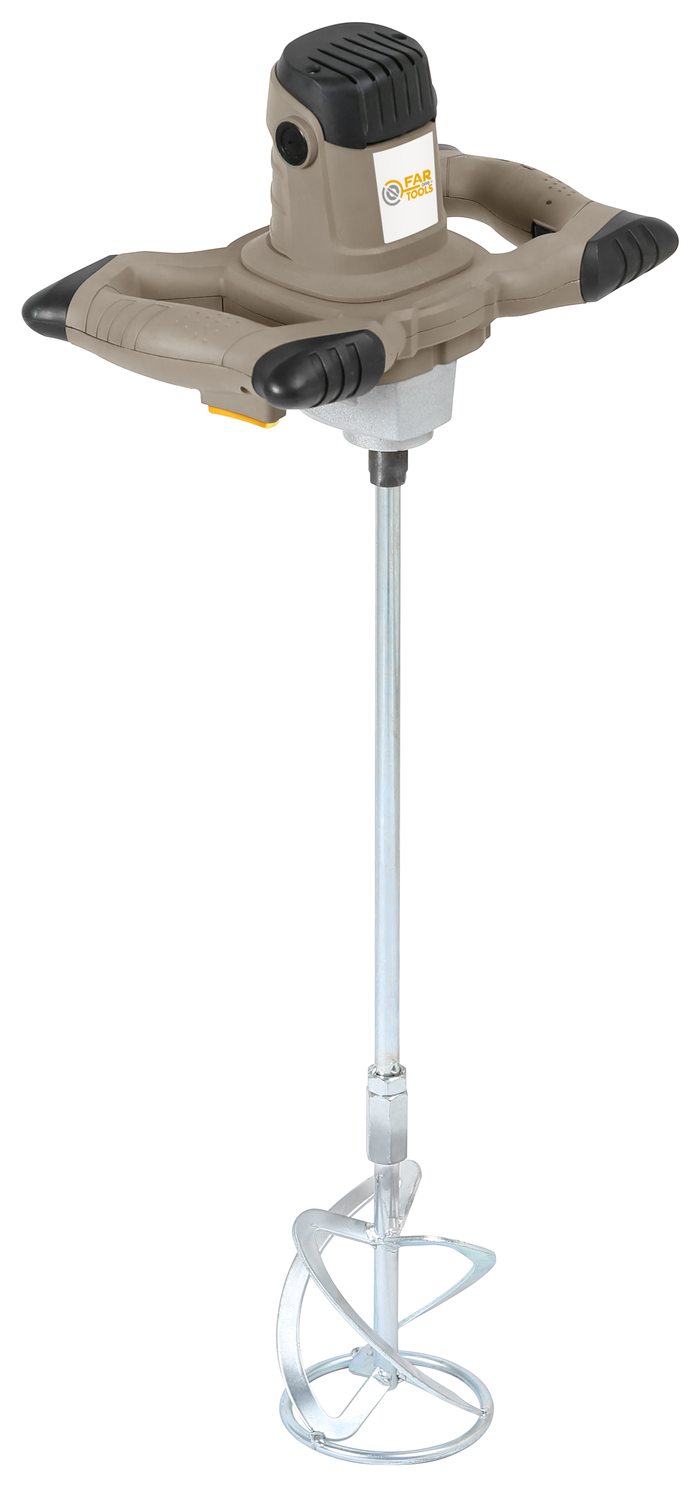 Malaxeur 1200W - Spirale de Ø120mm 70cm - Couple max 7Nm - vitesse variable de 0 à 700tr/min - Arbre M14 - Poignées ergonomiques et confortables avec coins renforcés - Pour mélanger les peintures ou les colles sans effort et de manière régulière et uniforme.