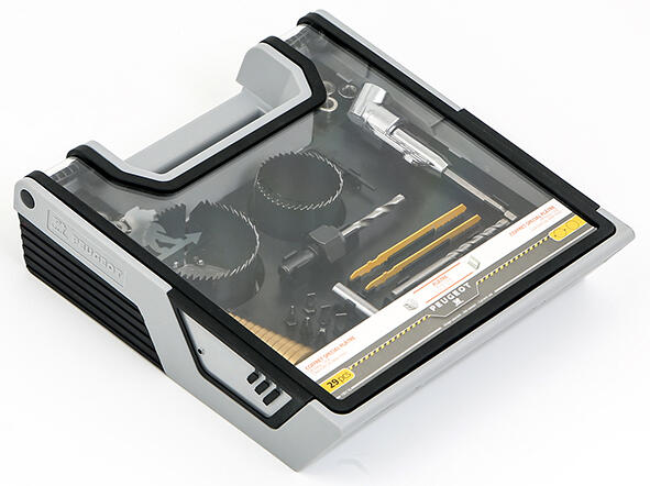 6 embouts de vissage spécial placo + support magnétique + 3 forets béton + 2 scies trépan pour plâtre + 1 foret étagé HSS + 2 lames scie sauteuse 100mm pour plâtre + adaptateur d'angle pour mandrin de perceuse.