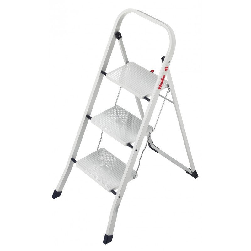 Hailo - Marchepied 3 marches hauteur de travail 2,69 m - PROFISTEP- Marchepied extra large- Marches avec reliefs antidérapants- Garde-corps intégré- Pliable et peu encombrant Verrouillage de sécurité- Patins antidérapants- Extra platµ- Pratique- Facile à ranger Montants et marches époxyCaractéristiques techniques :Charge max : 150 kgMatière : AcierNorme : EN14183Hauteur max d'accès : 2,69 mNombre de marches : 3Tablette porte-outils : NonGarde-corps : OuiMarches extra-larges : OuiEmbouts antidérapants : OuiGarantie 10 ans.