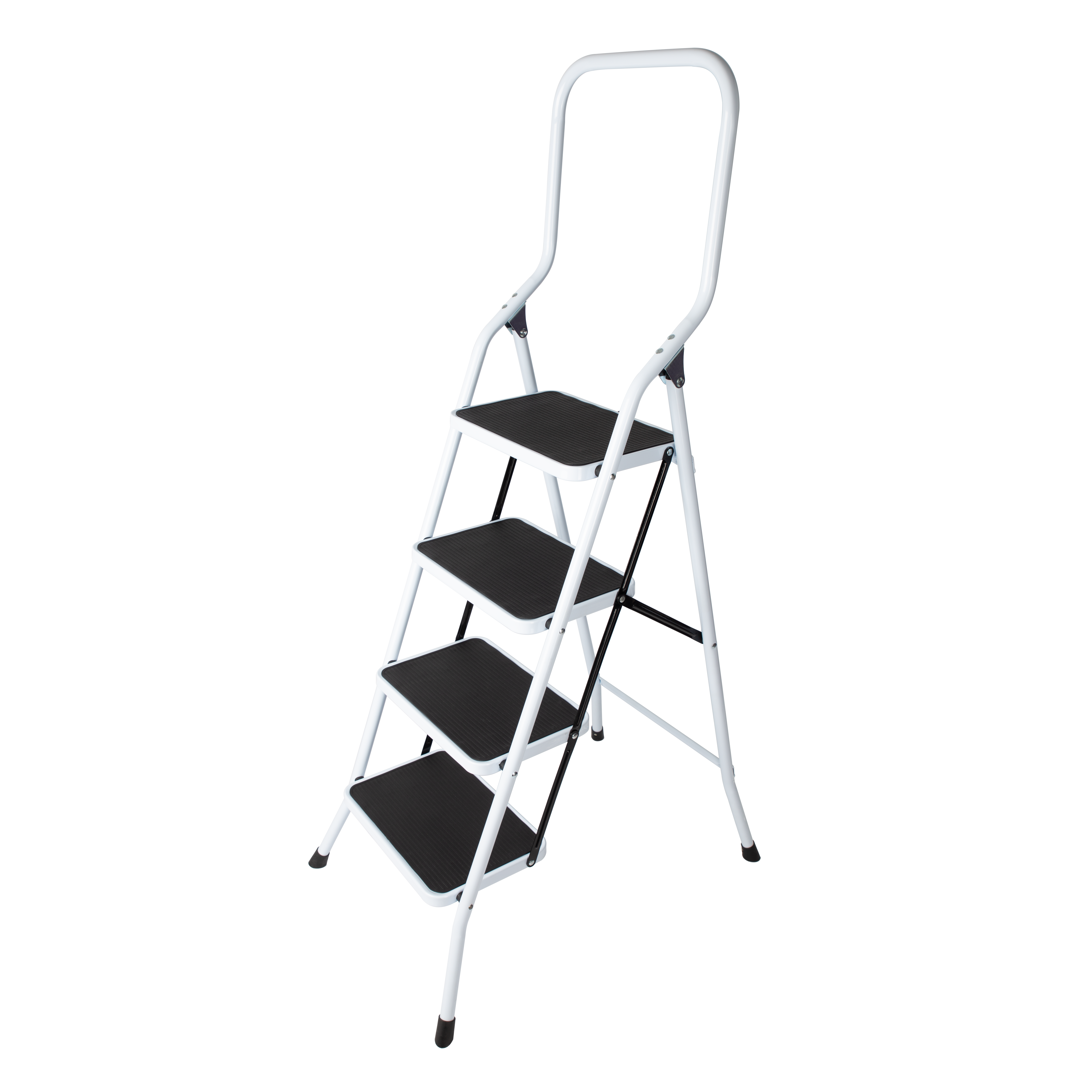 Marchepied 4 marches. Grand confort d'utilisation grâce à la largeur des marches et à son garde-corps. Sécurité maximale grâce au mécanisme de blocage. Larges marches avec revêtement antidérapant. Patins antidérapants pour une parfaite stabilité . Produit pratique et stable, il se déplace et se range aisément.