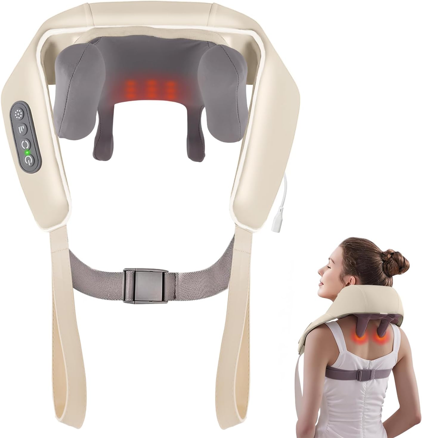 Masseur de cou avec charge de type C et design portable – Masseur d'épaule 6D pour soulager les douleurs au cou et aux épaules, avec chaleur