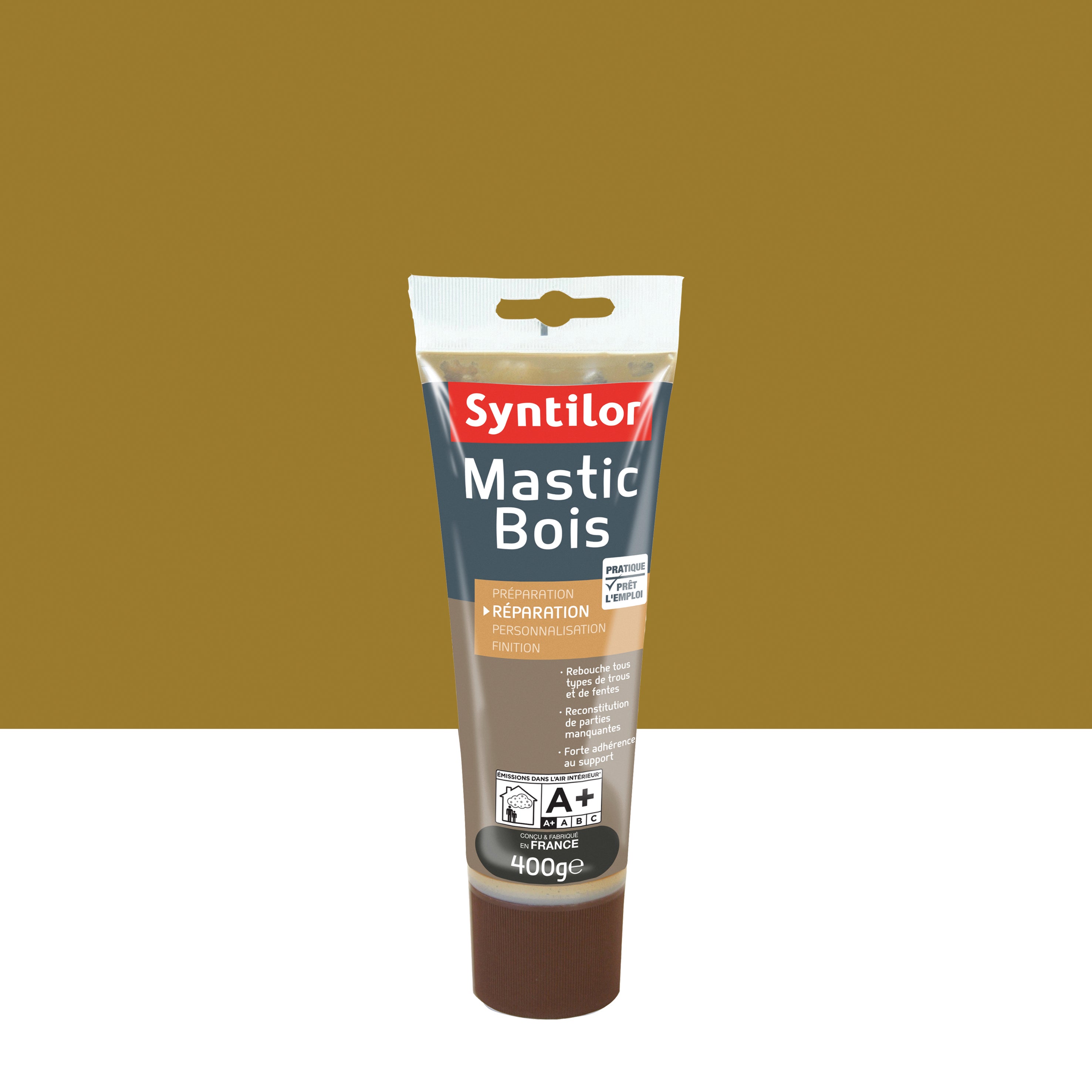 Prêt à l'emploi. Le Mastic Bois Syntilor, permet de reboucher les trous et fissures jusqu'à 1cm de profondeur et de reconstituer des parties manquantes situées en surface de 2 à 3 mm d'épaisseur. Il adhère parfaitement et accepte toutes les finitions pour permettre des réparations invisibles. Résines de hautes performances : ne craquelle pas, ne se rétracte pas. Intérieur/Extérieur.