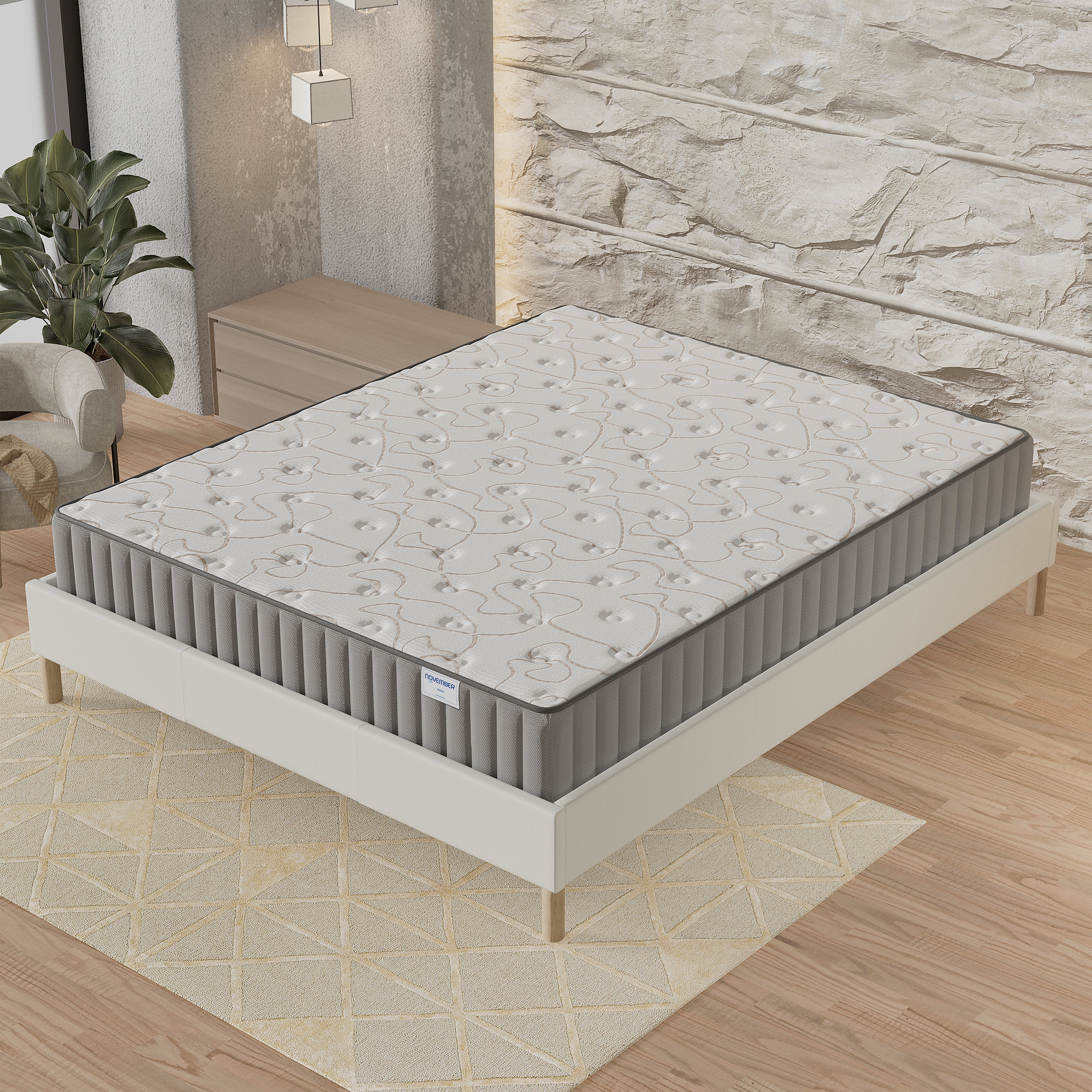 Le matelas Orionis est conçu selon les normes élevées de qualité de fabrication November. Il combine la technologie de mémoire de forme D50kg/m3 et mousse Haute densité D35kg/m3 pour vous garantir des nuits confortables et régénératrices.