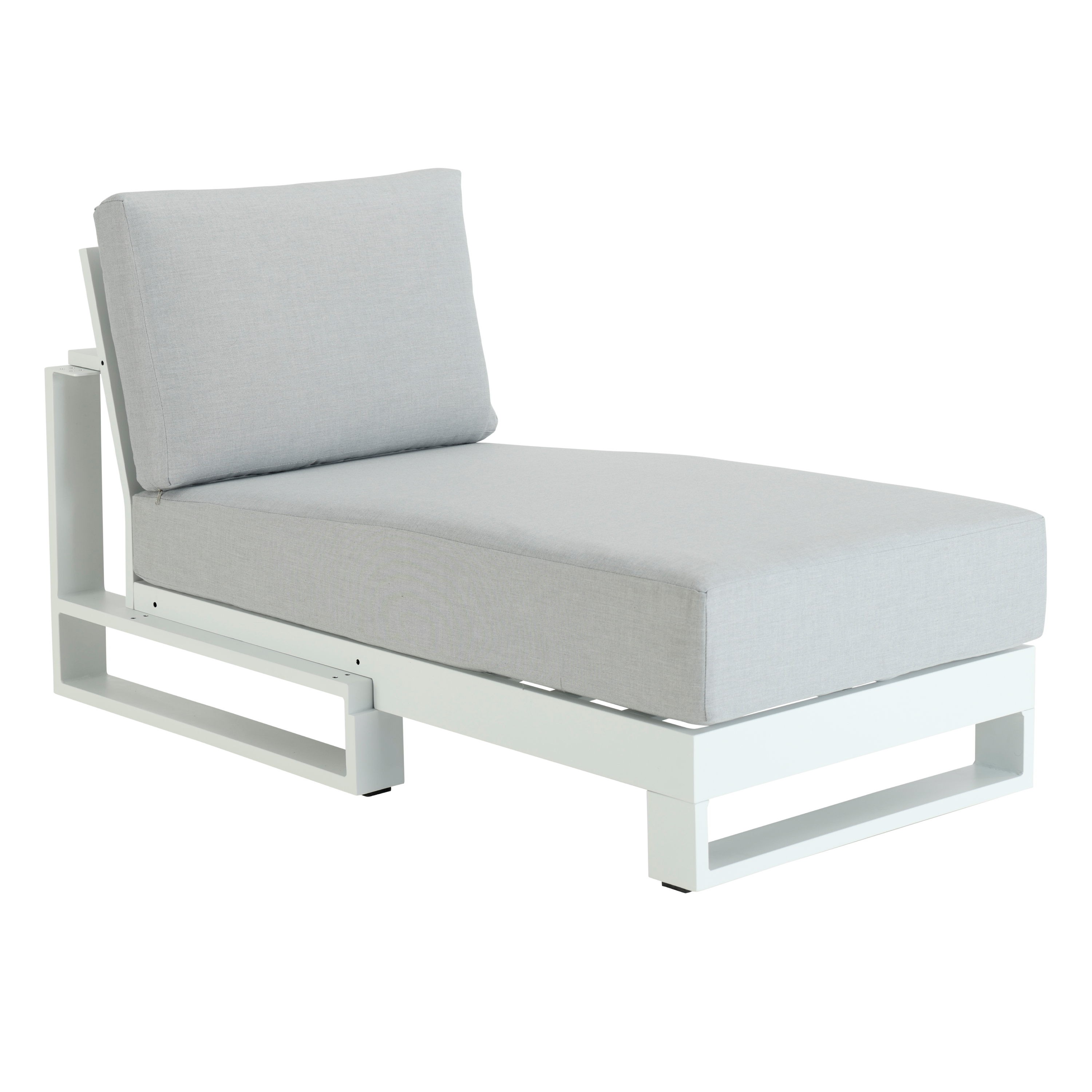 Profitez d'un apéritif entre amis confortablement installés dans la méridienne Athena. Un salon de jardin d'angle design et confortable pour vos chaudes soirées d'été Element complémentaire de la série Athena, la méridienne allie confort et élégance pour sublimer votre terrasse. Associée au fauteuil, au sofa 2 places ou 3 places pour créer un salon de jardin d'angle effet lounge, ses larges et épais coussins offrent une assise optimale pour vos soirées d'été. Avec une structure en aluminium et des coussins déperlants et déhoussables, la méridienne Athena est synonyme de résistance et solidité pour vous accompagner année après année. Qualifiée pour l'usage professionnel, elle peut également être utilisée en terrasse d'hôtel ou de café. Une gamme contemporaine et modulable Réalisées en aluminium épais, les lignes de la série Athena sont droites et épurées pour un effet design et aéré. Cet élément à fixer aux fauteuils ou sofas de la gamme, à la structure blanche et aux coussins clair, donnera un aspect moderne et élégant à votre extérieur. Intégré dans le set complet Athena, cette méridienne s'adapte harmonieusement aux autres éléments de la collection. L'ensemble de la gamme est également disponible en gris anthracite. Des matériaux faciles d'entretien Pratique au quotidien, votre élément de salon de jardin Athena se nettoie facilement à l’aide d’un chiffon humide et d’un produit neutre. Les coussins sont déhoussables et leur housse passe en machine. Pour préserver sa qualité, pensez à recouvrir votre salon de jardin d'une housse Naterial pendant l’hivernage. Réparable, des pièces détachées sont disponibles pour prolonger la durée de vie de votre mobilier.